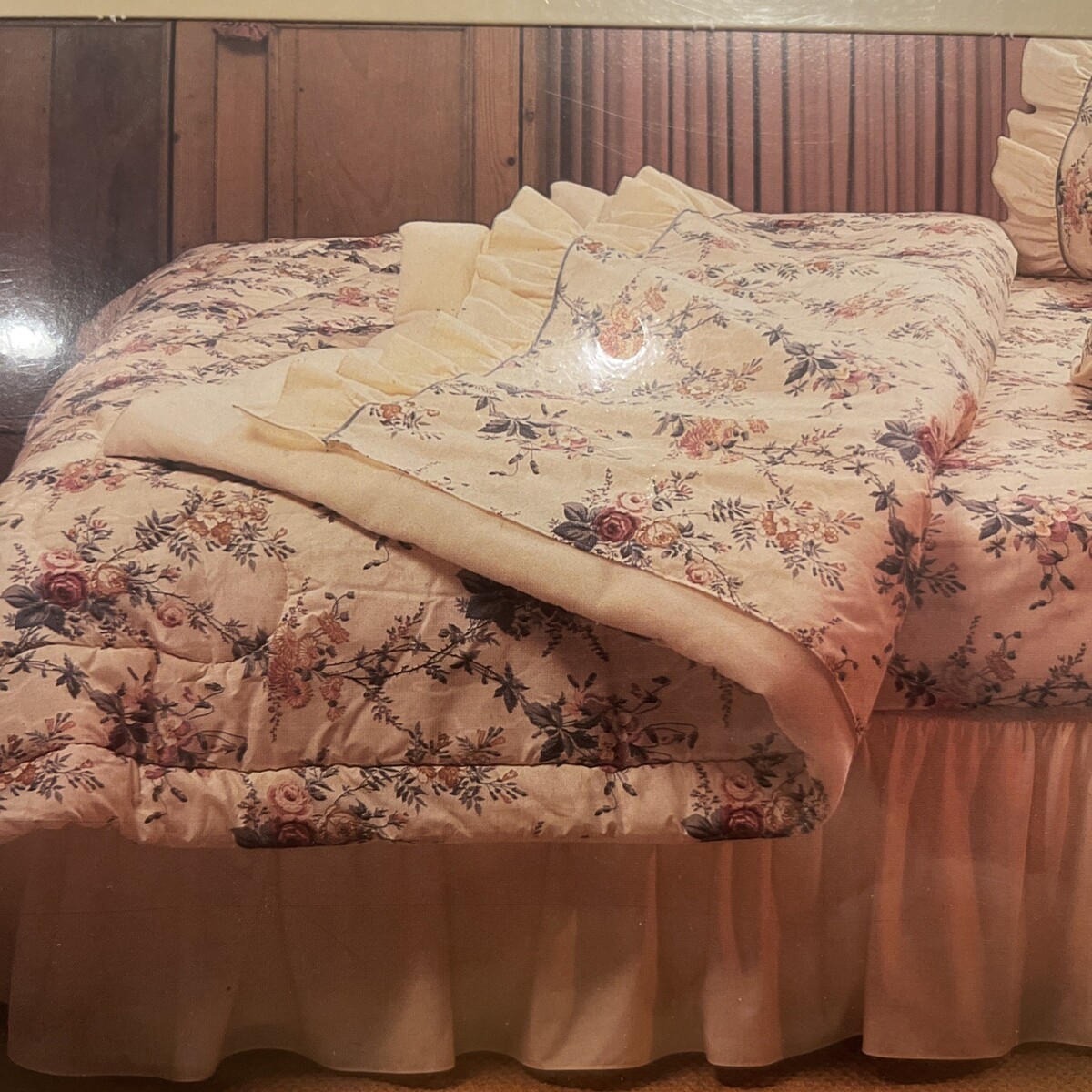 MARTEX Full Flat Sheet Cream Floral Ruffle No-Iron Percale Cotton Blend Made USA