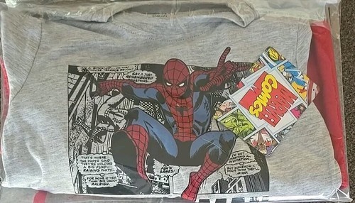 Tee Shirt ~ Short Sleeve ~ Spiderman Comic Graphic on a Gray Background