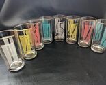 MCM 1960’s High Ball Glasses Lucky Number 1 2 3 4 5 6 7 8 Set Gold Rim