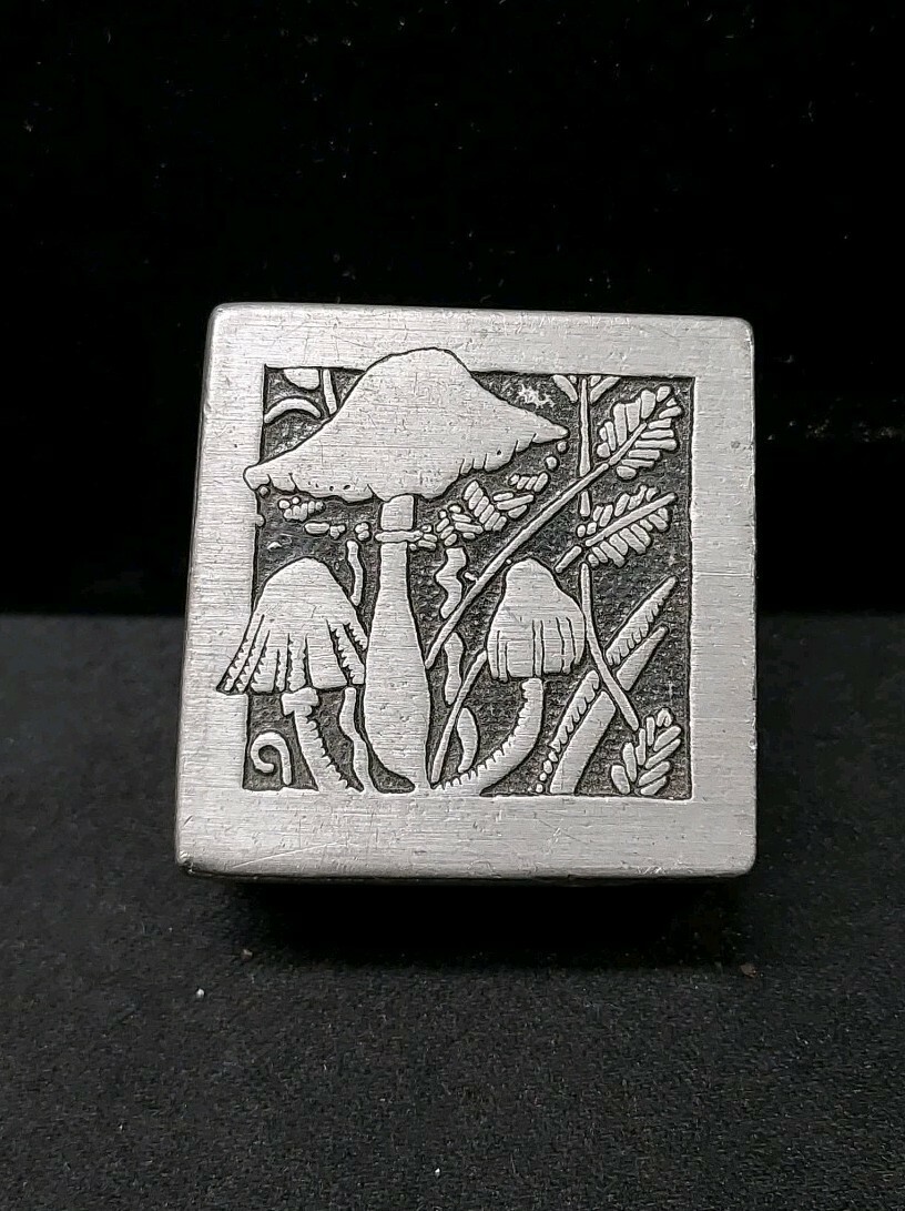 - MCM 1979 Sulitan Solid Pewter Trinket Ring Box No. 59 Mushroom Design On Lid
