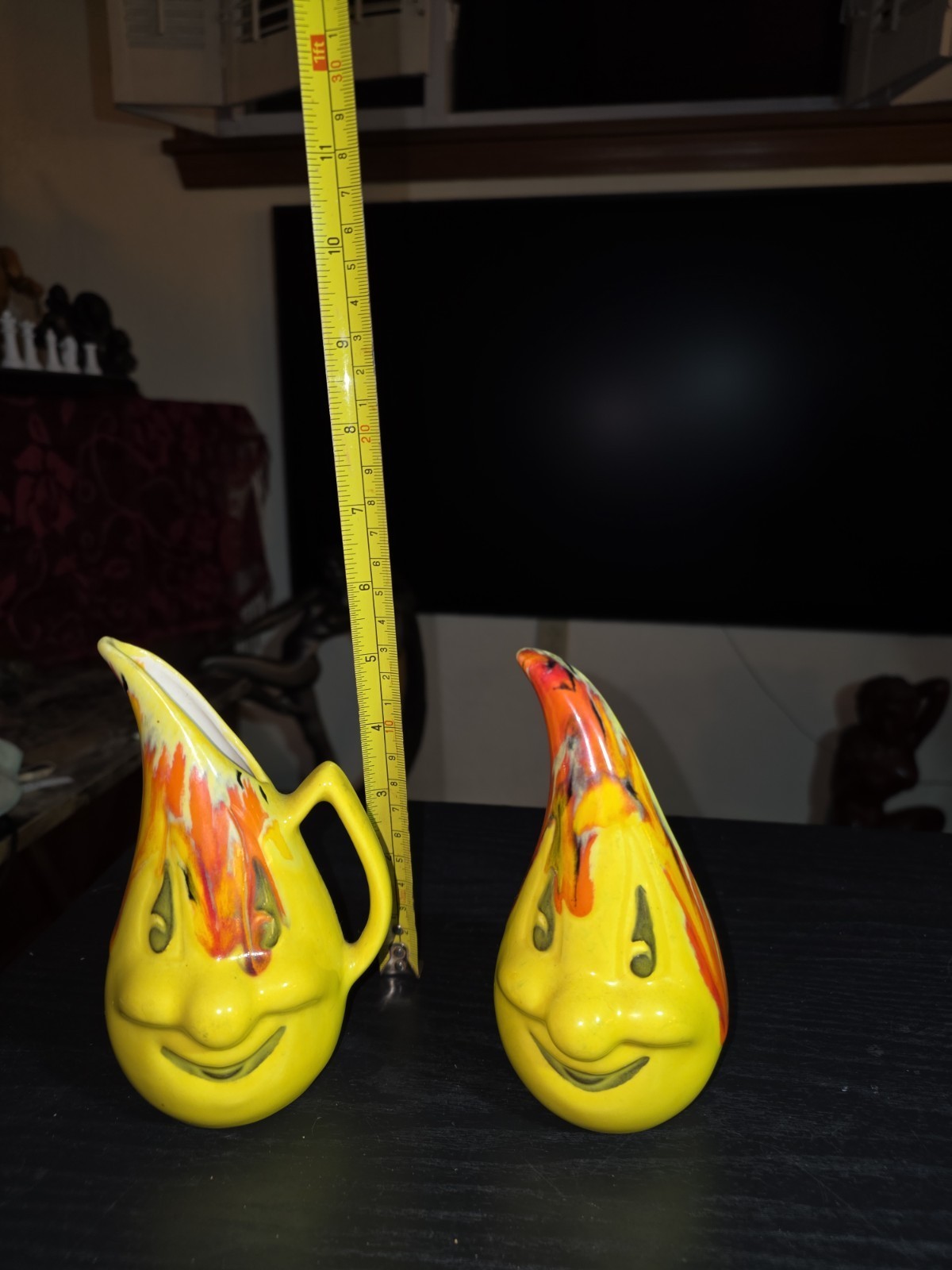 - MCM Handy Flame Ceramic Sugar Bowl Creamer Yellow Orange