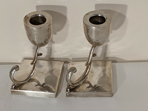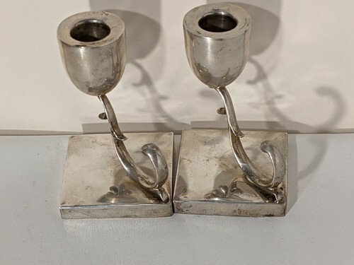 - MCM Pair P Lopez G Mexican Sterling Silver 925 Candle Holders Sticks 4.5 Inch