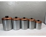 - MCM Set of 5 Spun Aluminum Kitchen Canisters Copper Color Lids Made in Italy