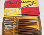 - MCM Vintage Stainless w Wood Handle Party Spreader Knife Set in Box 6 inch Long