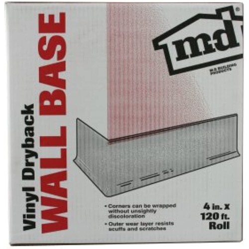 Product Description M-D Building Products 75499 4" x 120' Cove Wall Base Vinyl Rolls, Silver Gray (120 Pack)M-D Building Products 75499 4" x 120' Cove Wall Base Vinyl Rolls, Silver Gray (120 Pack) Features: Dry back . 080" thickness 120' length 4" Silver Gray From the Manufacturer Flexible Silver Gray Vinyl Wall Base protects base of walls from damage and cleaning chemicals. Outer wear layer resists scuffs and scratches. Toe at base and lip at top help to cover minor flaws in wall and floor. Made from PVC vinyl to provide years of beauty and durability. Will not chip crack or fade. Vinyl Wall Base is easy to apply with cove base adhesive.