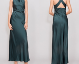 - MELLODAY Ruched Cowl Neck Bias Cut Satin Maxi Dress, Large, Hunter Green, NWT
