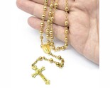 - METAL ROSARY 26" Necklace 6" Drop 6mm Gold Tone Prayer Beads Catholic Crucifix