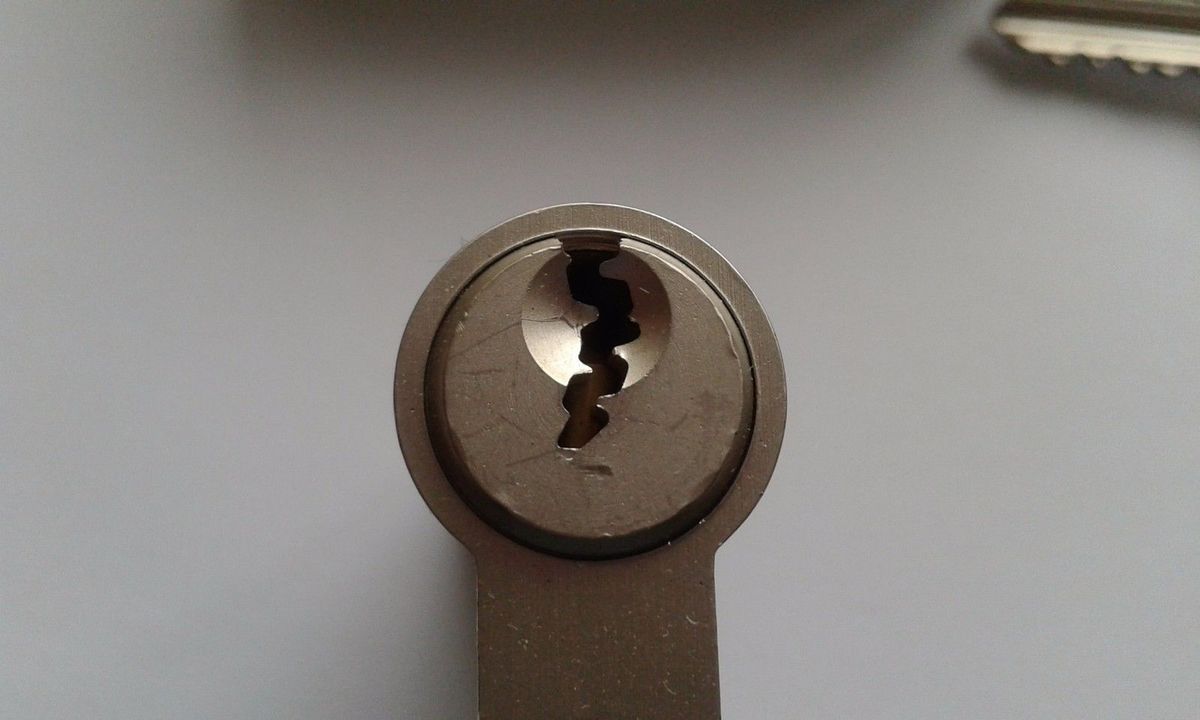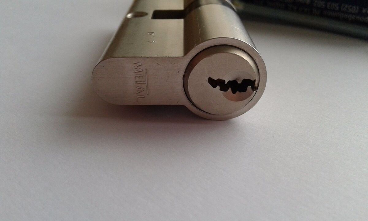 Cylinder is six locking pins with a cut in the body and rotor, patented keyhole and key profile.