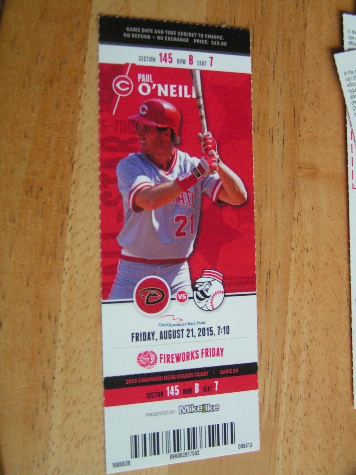 - MLB Cincinnati Reds Full Unused Ticket Stub Arizona 8/21/15 (Paul O’Neill)