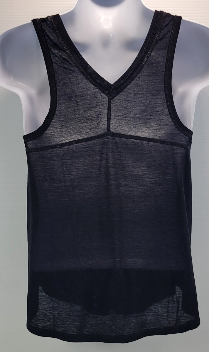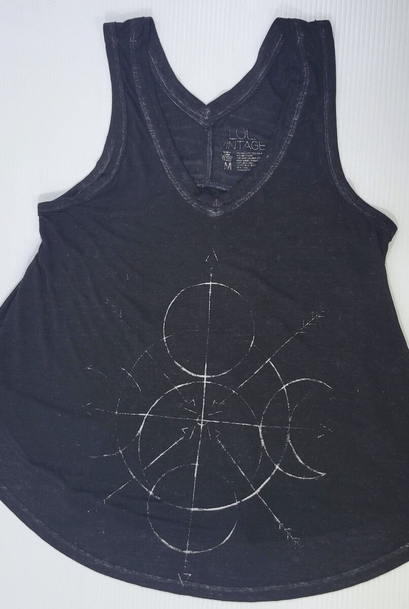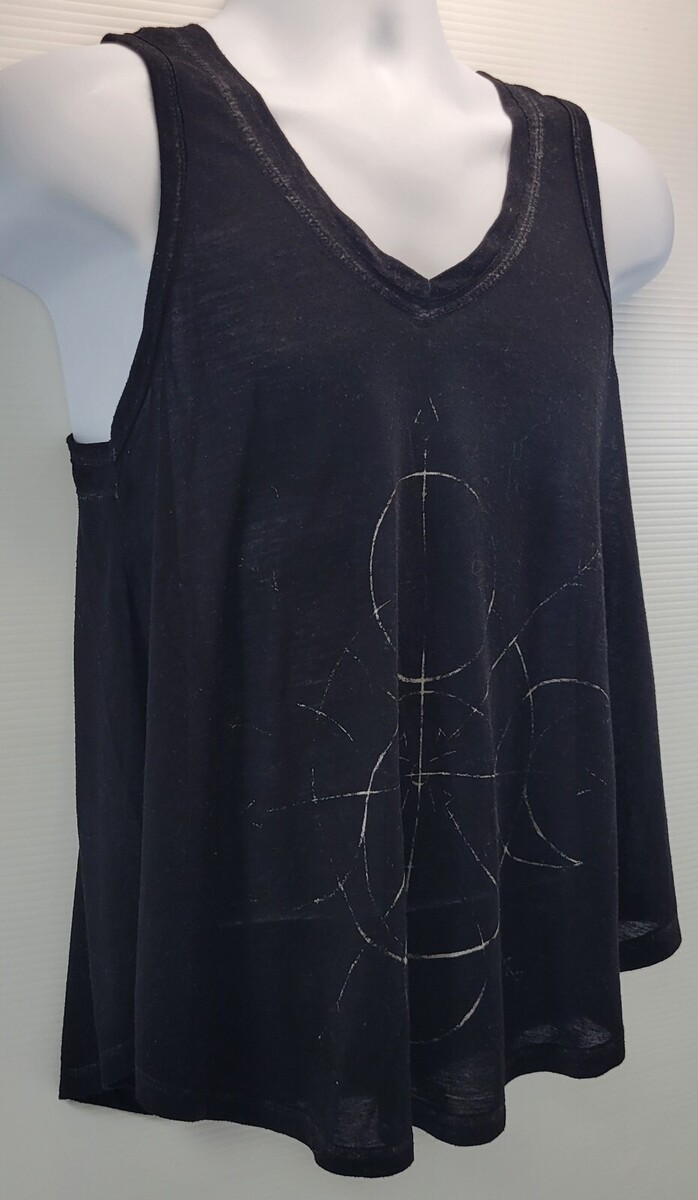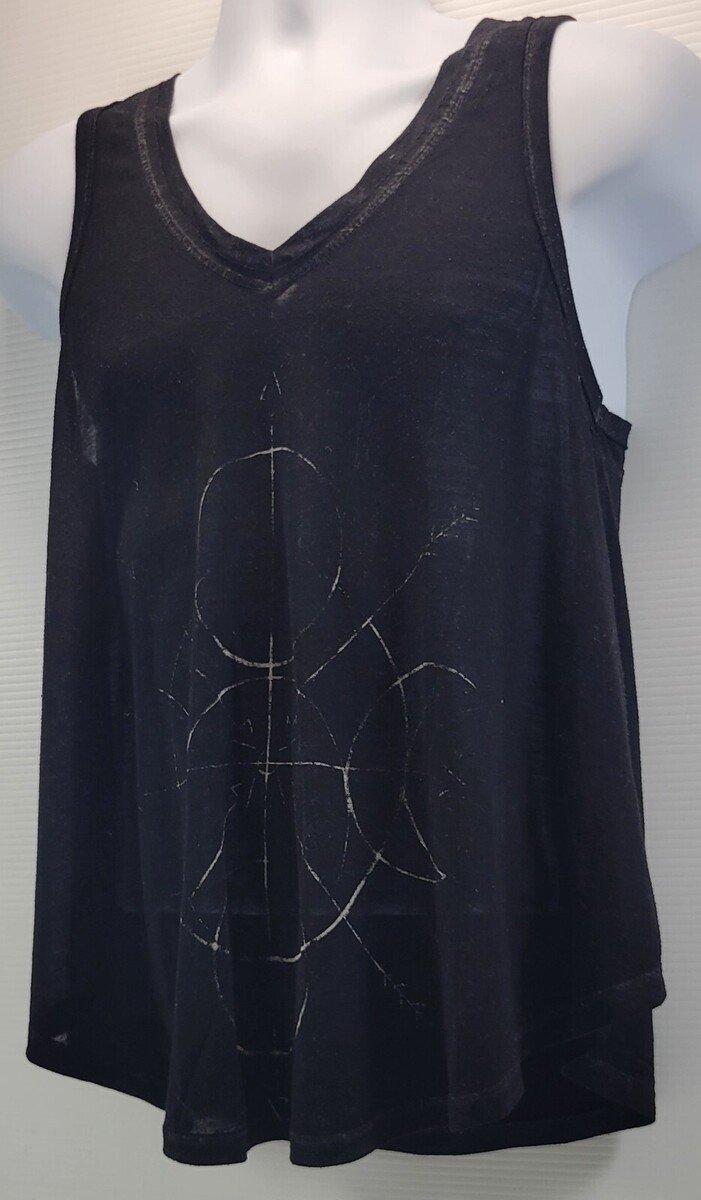 MM) LOL Vintage Woman Geometric Graphic Black Sleeveless Tank Top Shirt Medium