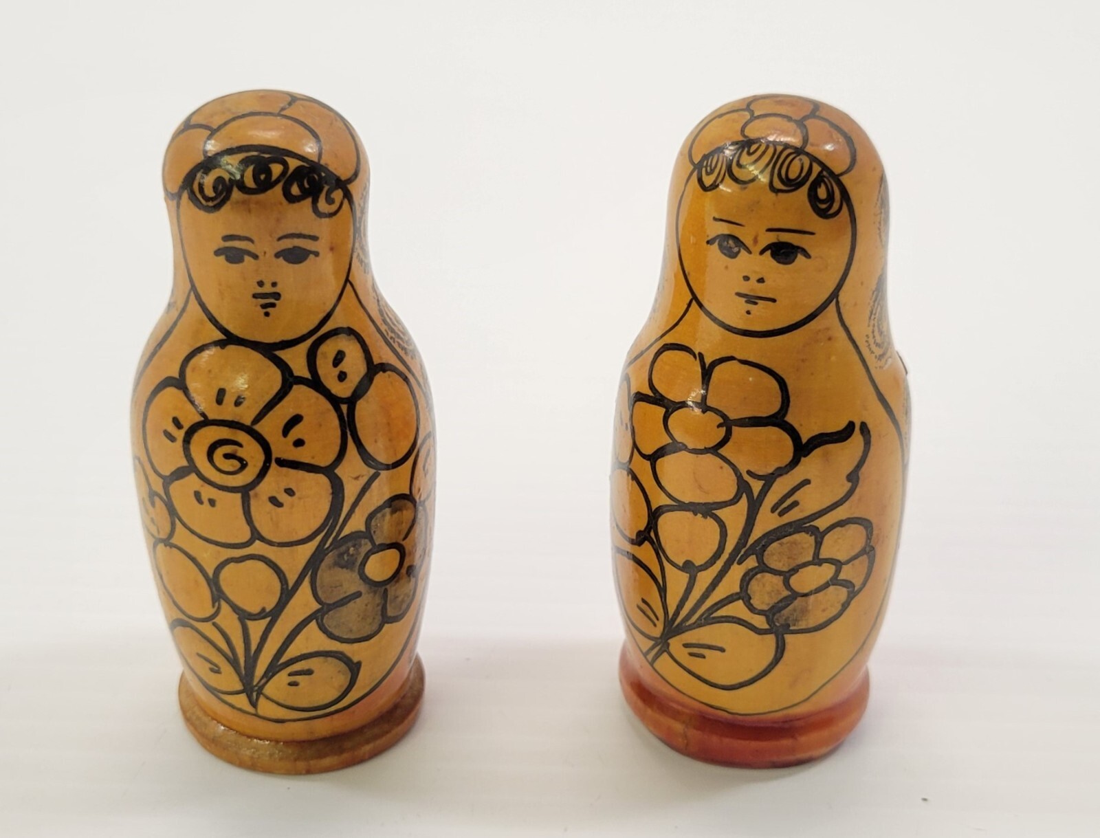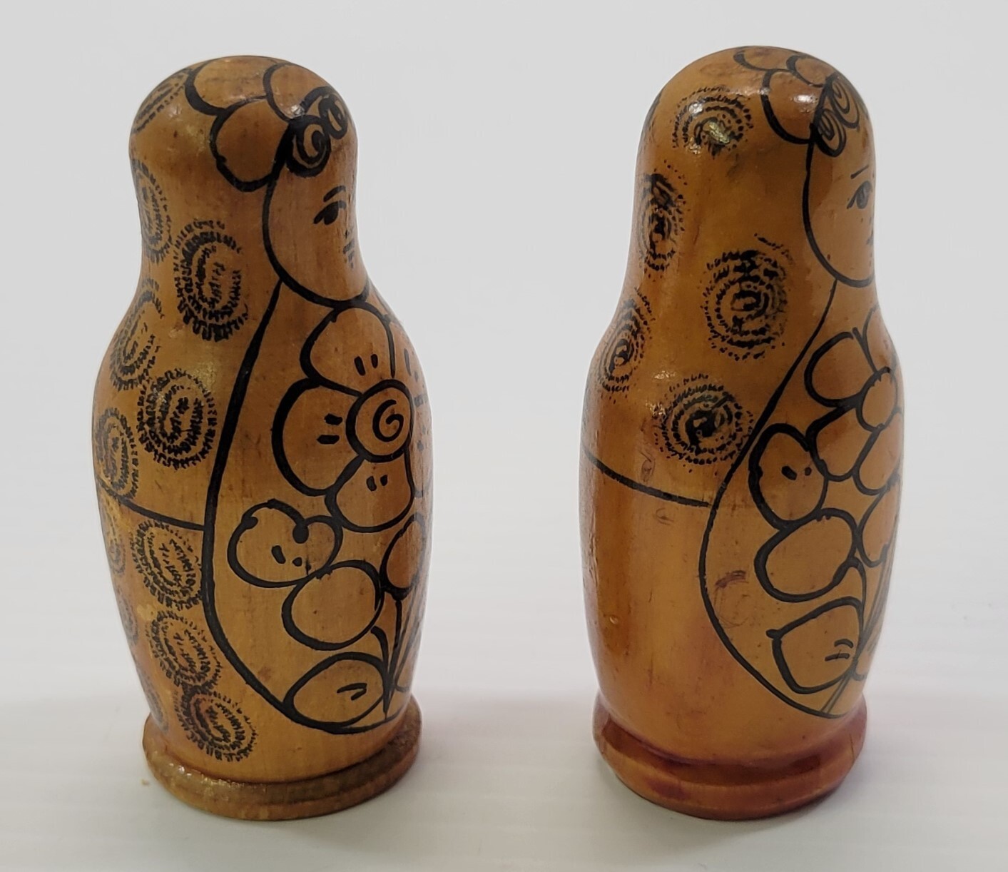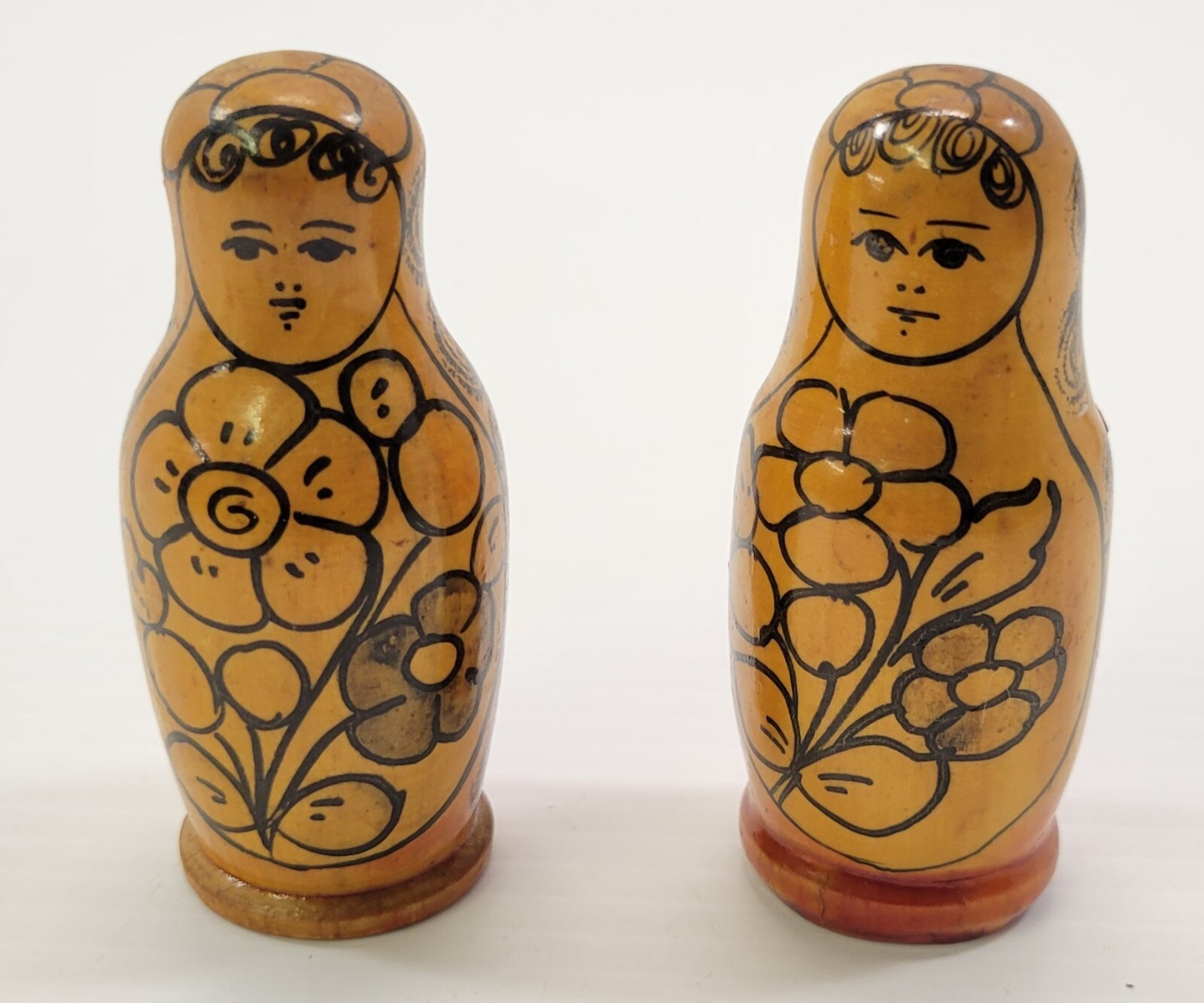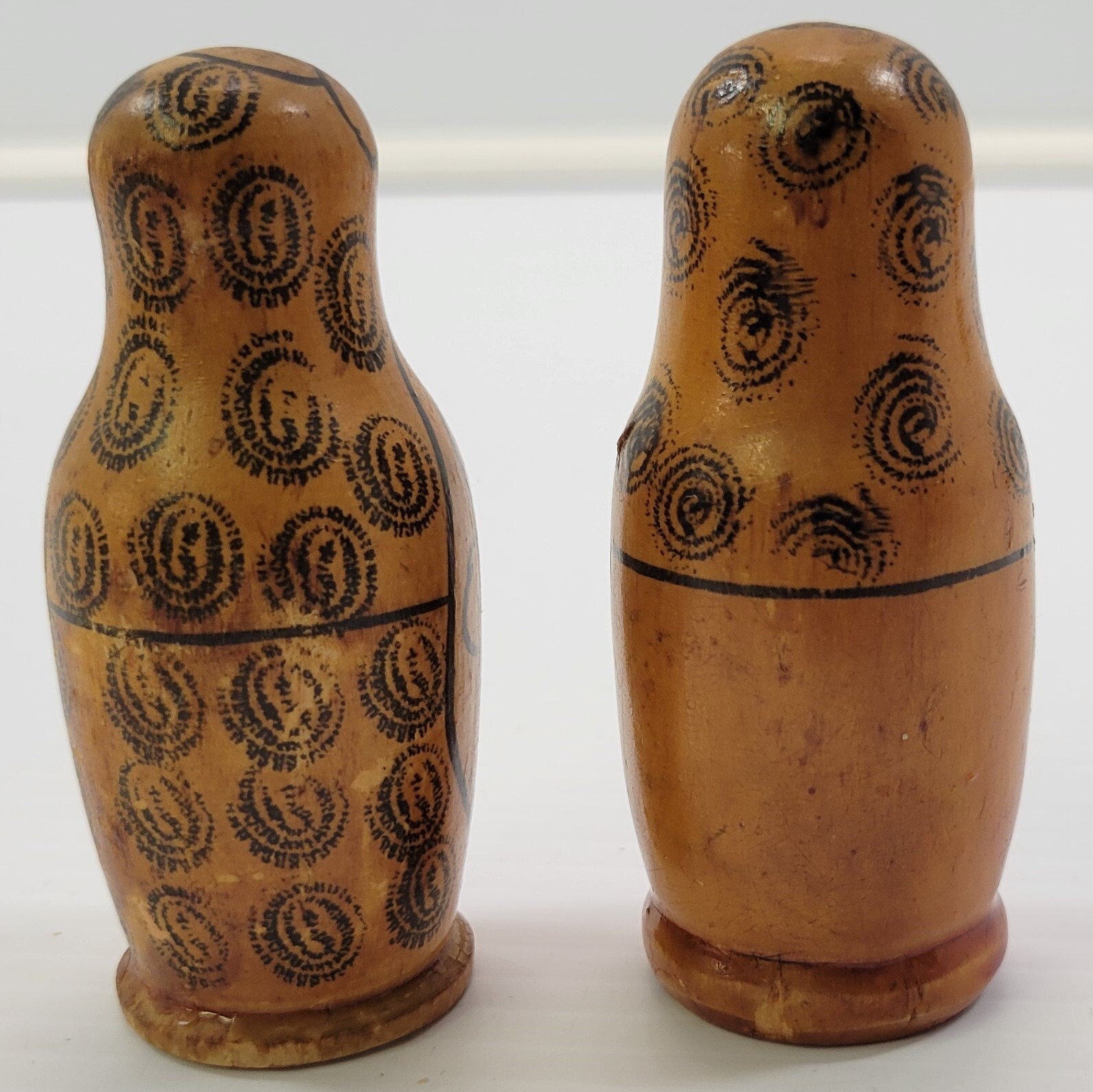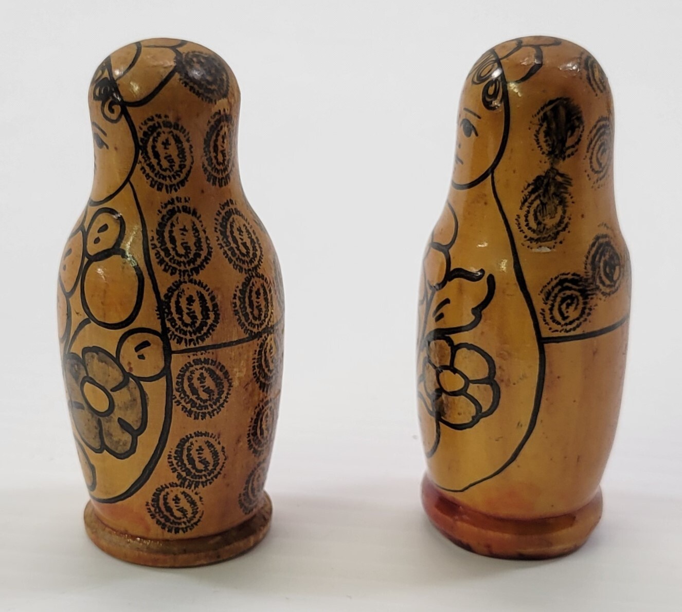 - MM) Pair of 2 Vintage Wooden Russian Nesting Dolls 3"