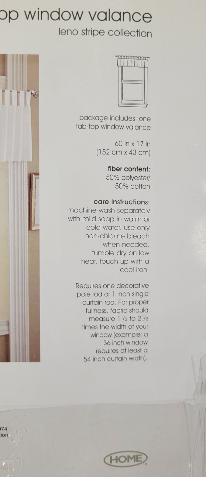 Package includes one tab-top window valance