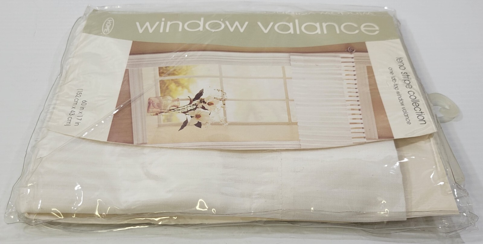 - MM) Target Home Leno Stripe Window Valance Tab Top White Curtain 60" x 17"