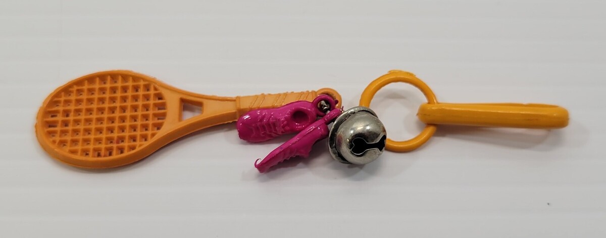 MM) Vintage 1980s Plastic Bell Charm For Necklace Orange Tennis Racquet Shoes