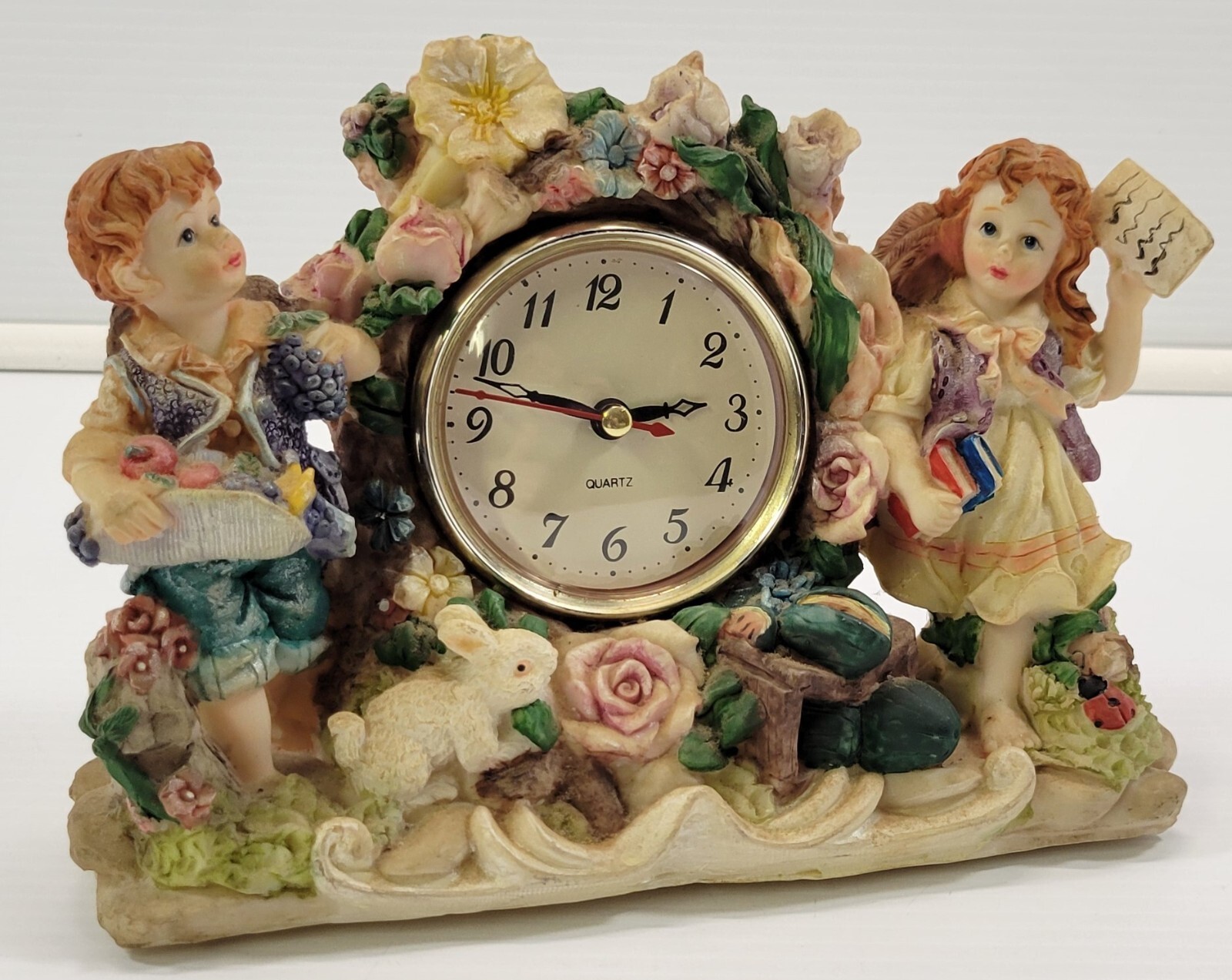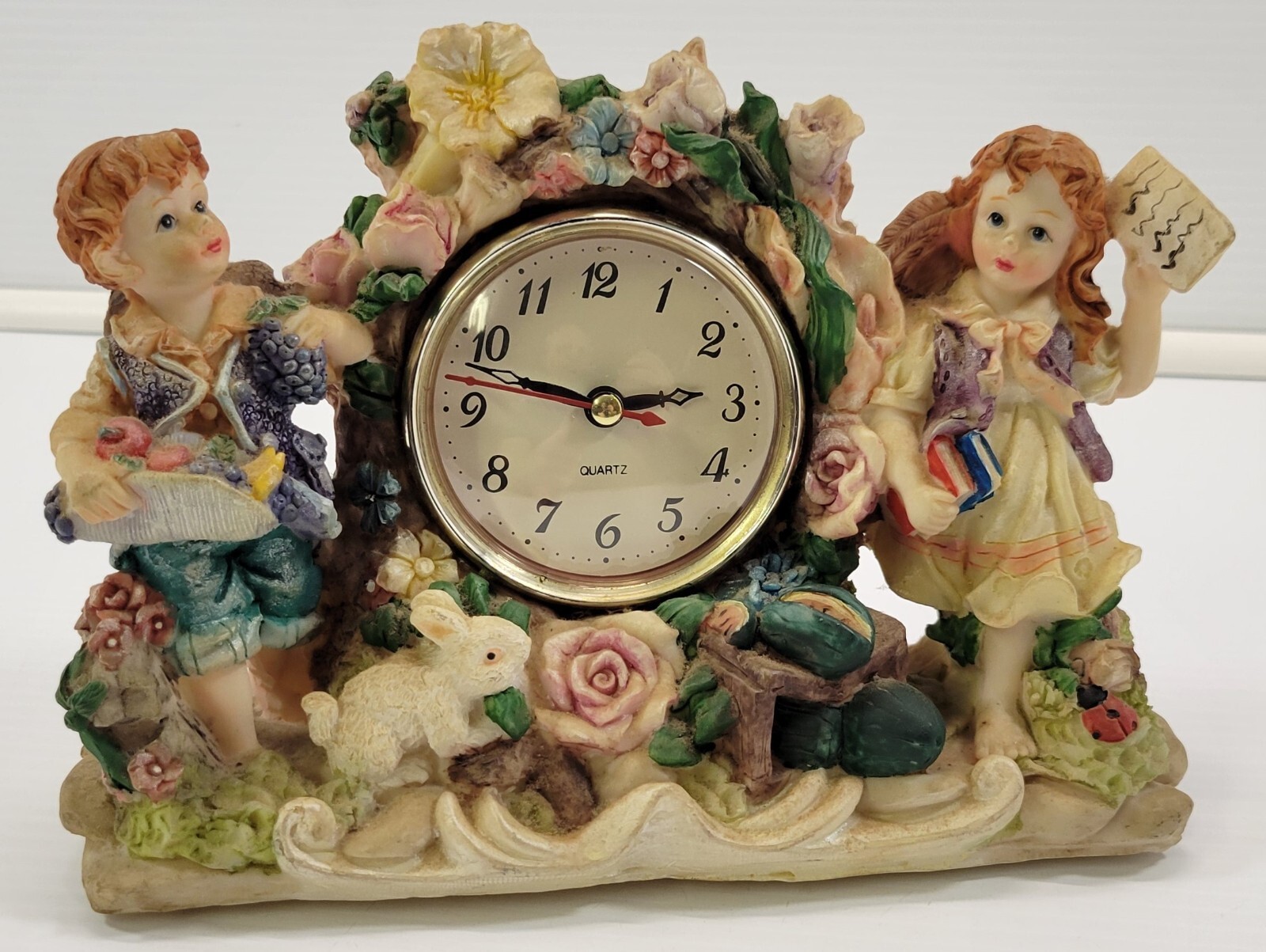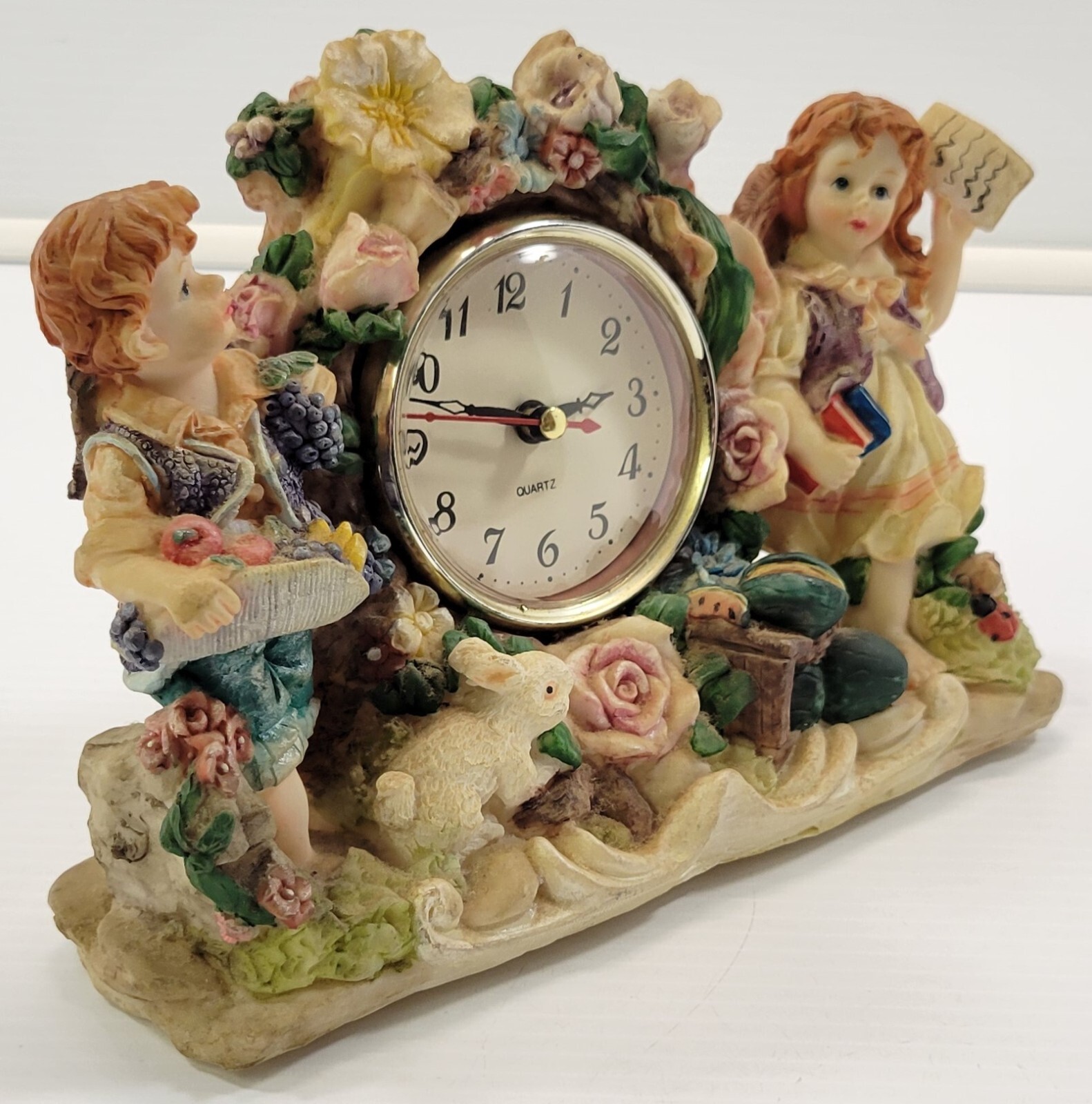 - MN) Tabletop Mantel Boy Girl Bunny Garden Clock Battery Analog Shelf Clock