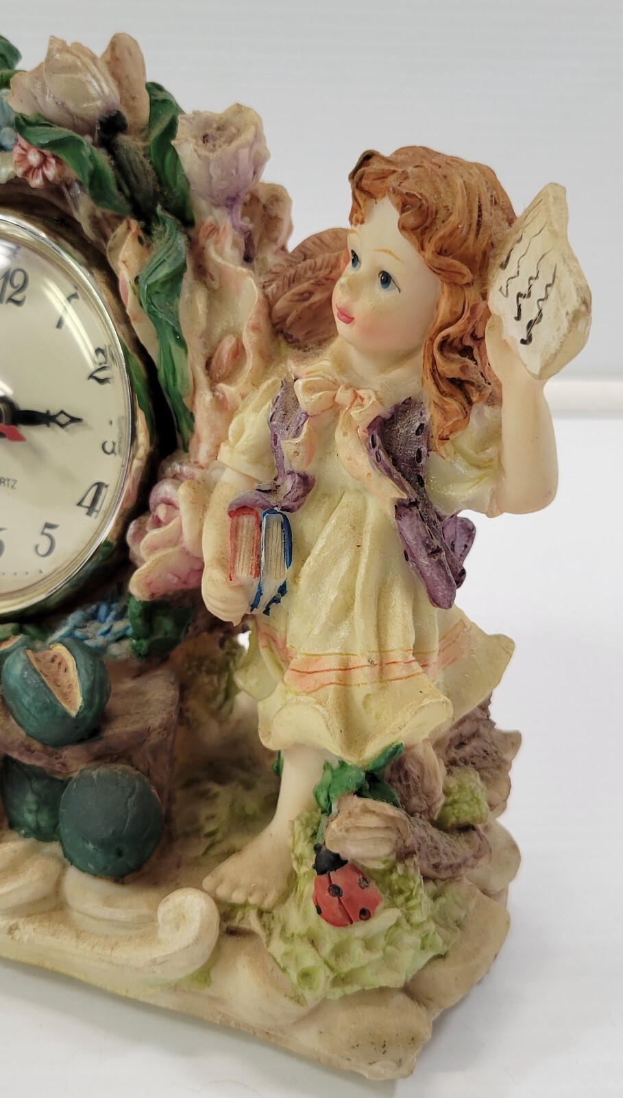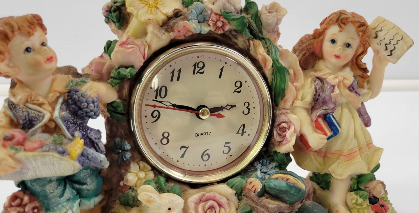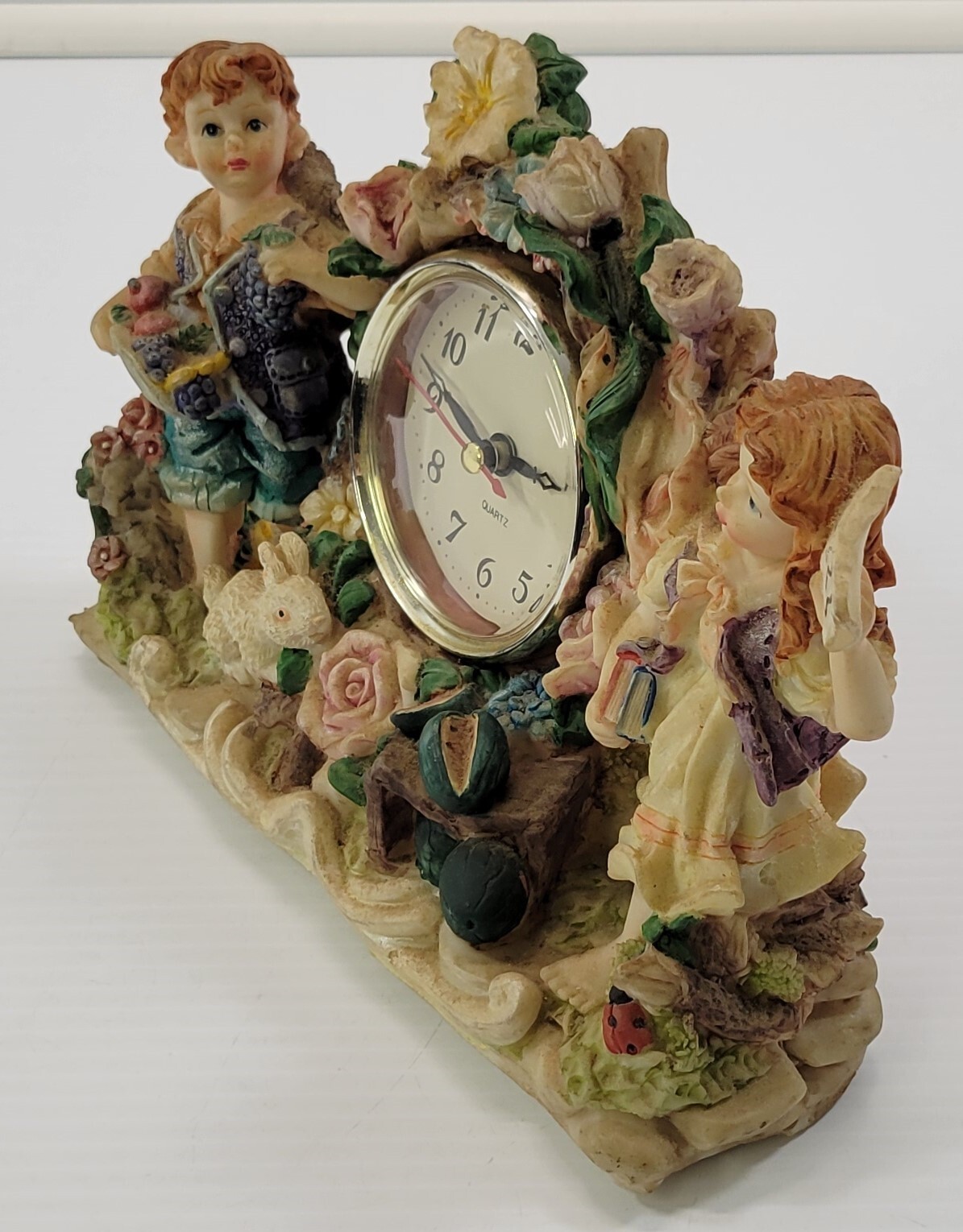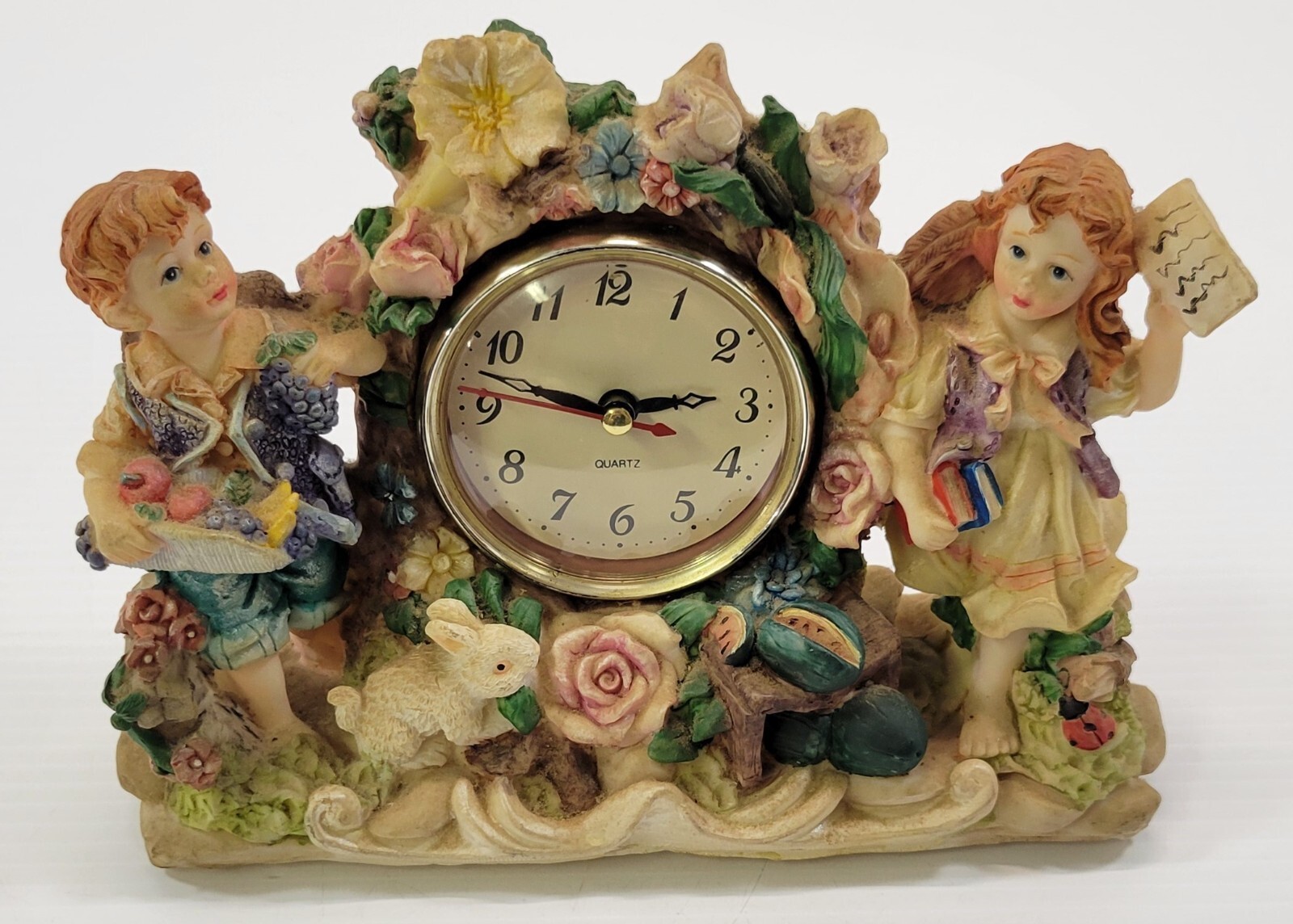 - MN) Tabletop Mantel Boy Girl Bunny Garden Clock Battery Analog Shelf Clock