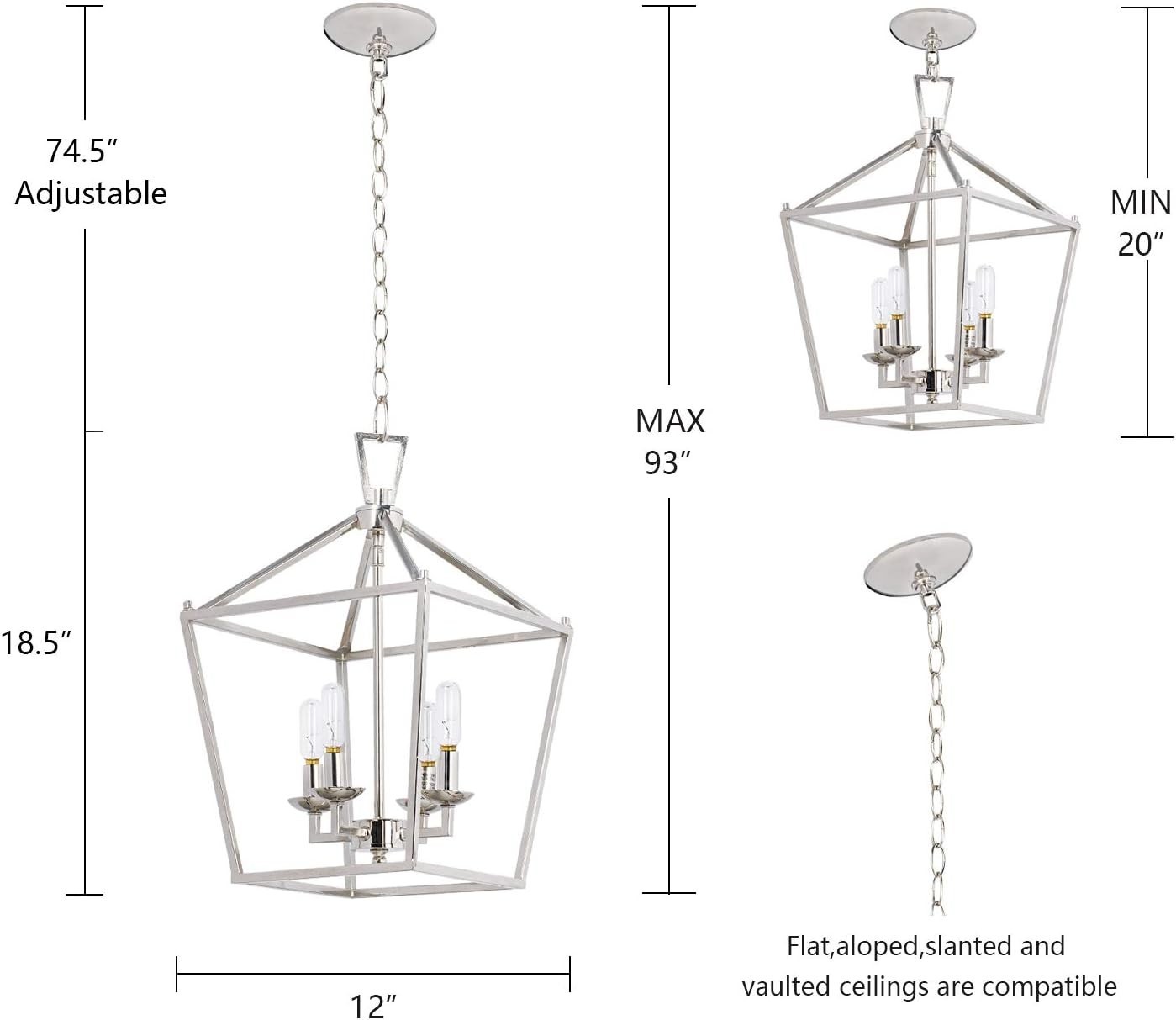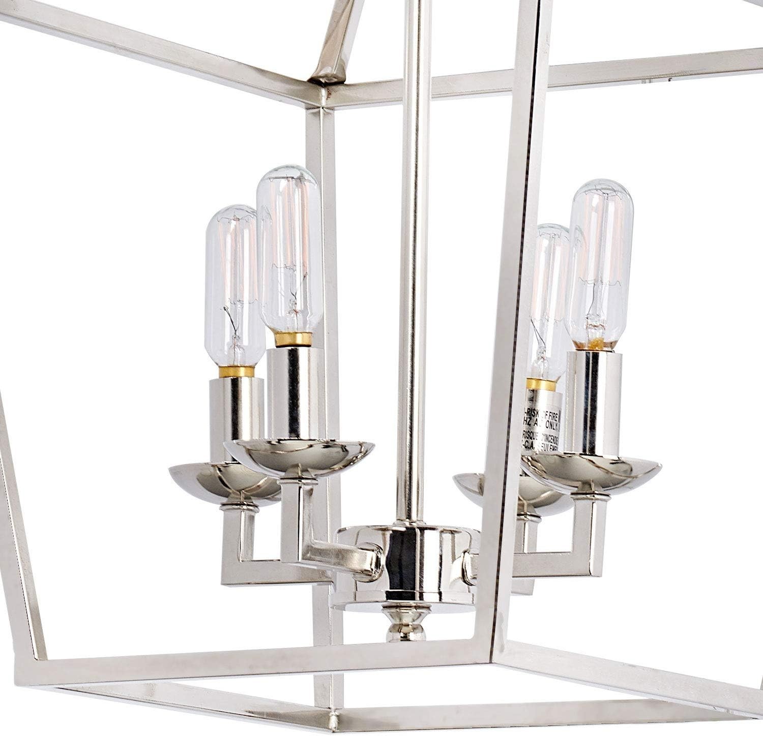 - MOTINI 4-Light Silver Lantern Pendant Light Polished Nickel Hanging Fixture Foye