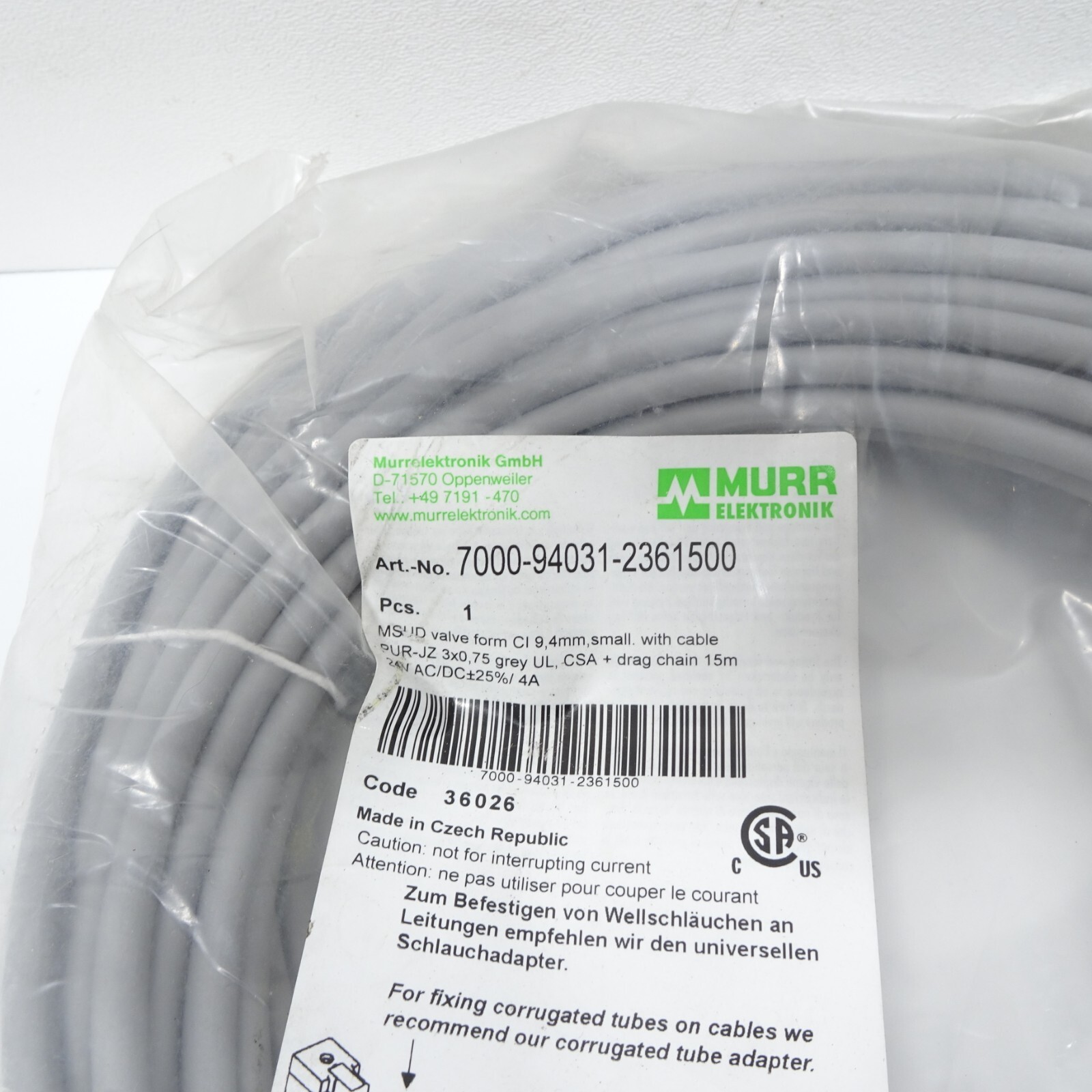 - MSUD valve plug CI-9.4mm with cable PUR 3x0.75 gy UL/CSA+drag ch. 15m