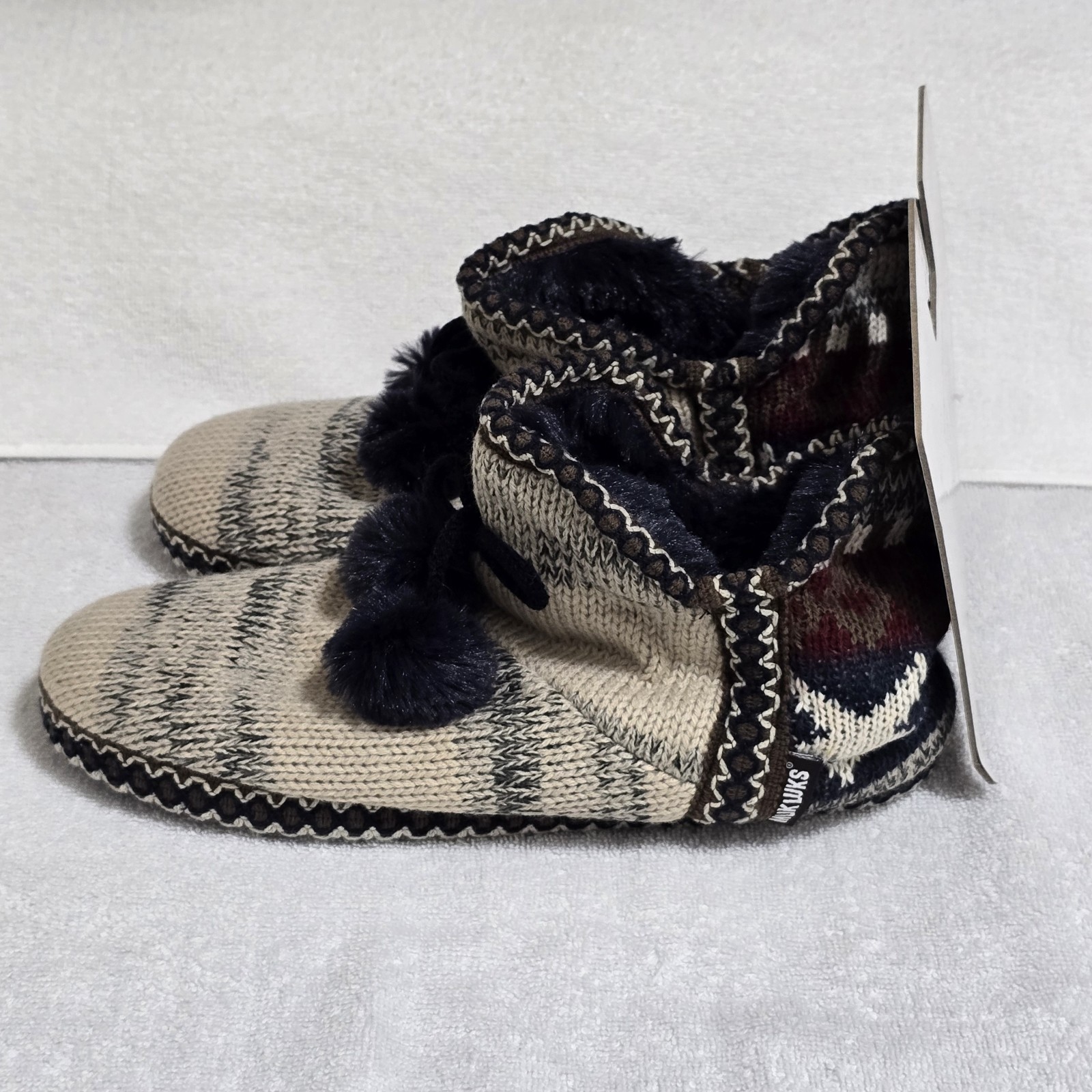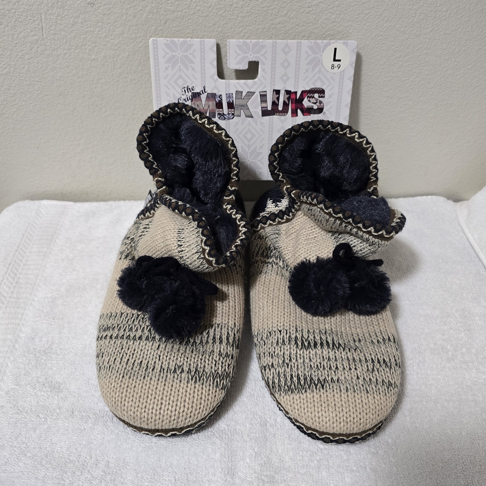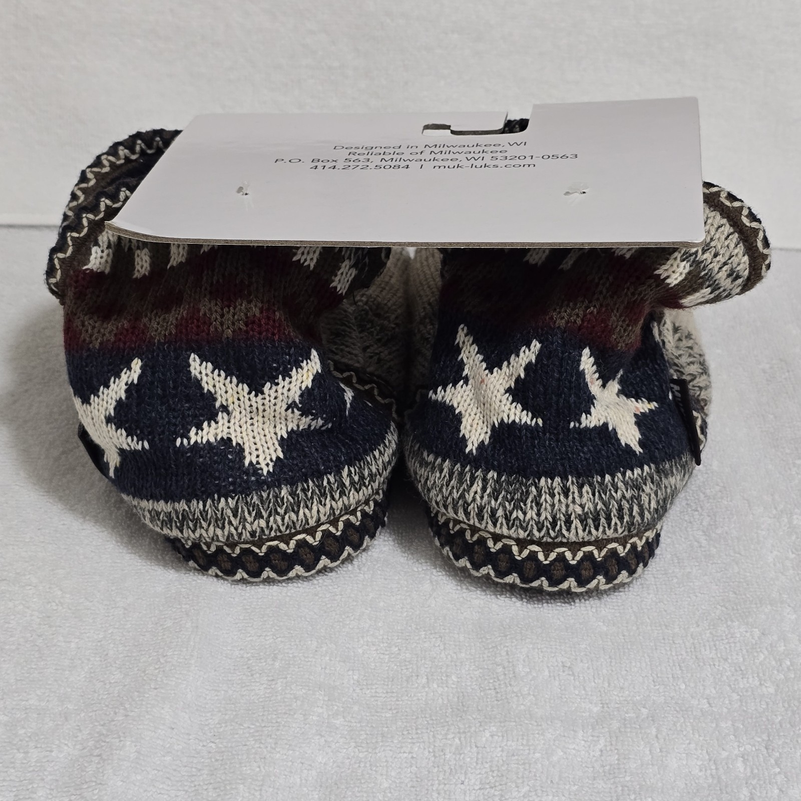 - MUK LUKS Knit Slippers Women’s L 8-9 New Faux Fur Lined Stars Pom Pom Cozy