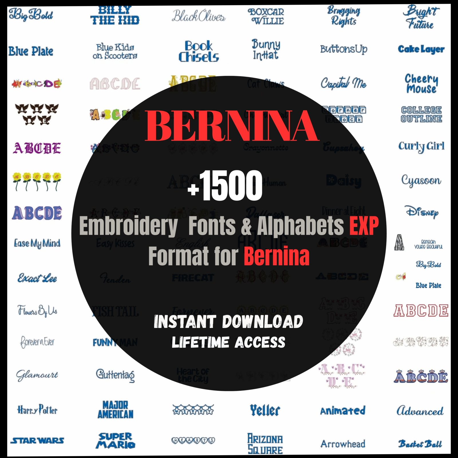Machine Embroidery Fonts and Alphabets Designs for Bernina – EXP Format – Instant Download – Collection of 1500