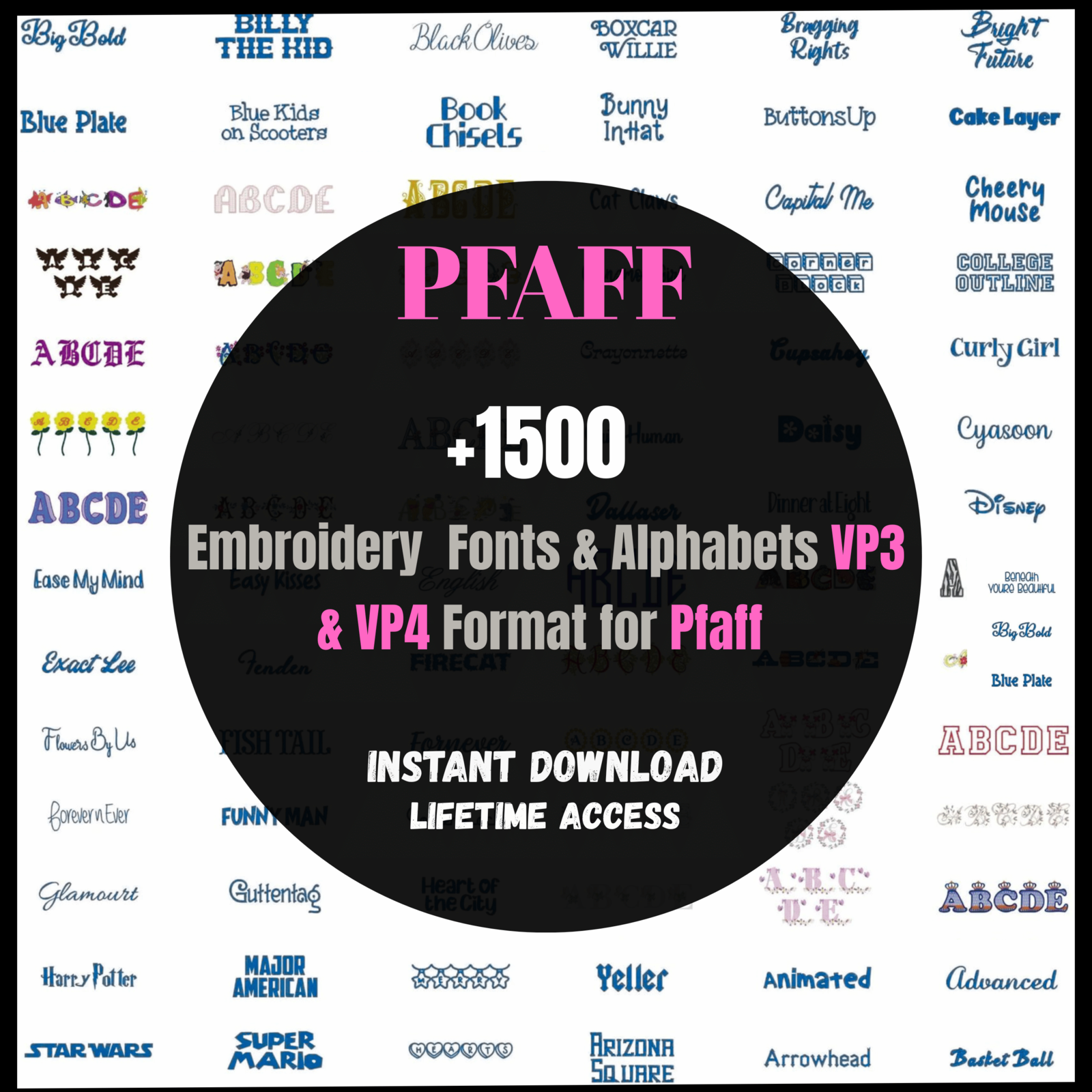 Machine Embroidery Fonts and Alphabets Designs for PFAFF – VP3 Format – Instant Download – Collection of 1500