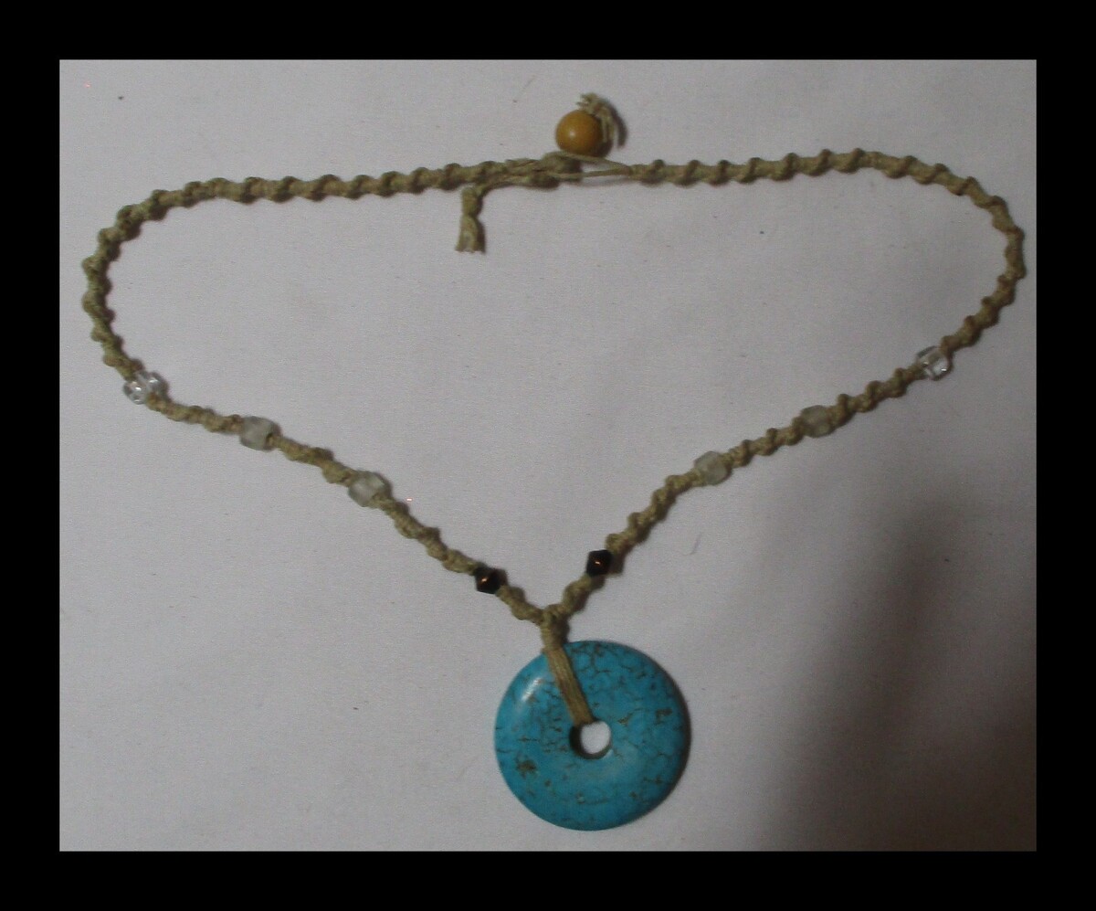 - Macrame Necklace with Faux Turquoise Pendant 18"