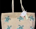Brand new with tags viral TikTok TJMaxx beaded sea turtle tote bag. Tan canvas with blue and green beaded turtles
