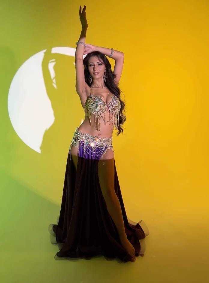 Don?t miss your chance to own a unique performance costume that reflects your individuality and passion for belly dance. DM us to customize your dream costume today and get ready to mesmerize on stage! ?? #BellyDance #DanceCostume #PerformanceReady #MadeToOrder #SparkleAndShine