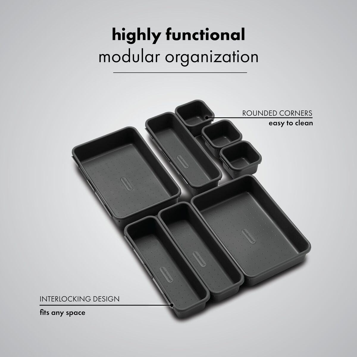 - Madesmart 8-Piece Interlocking Bin Pack for Drawer Organization, Plastic Interlo