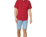 Madewell Mens Reg-Fit Perfect Shirt Crinkle Cotton Twin Pinstripe Carmine-Small