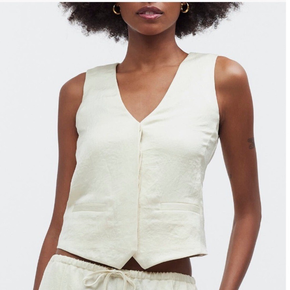 - Madewell Satin Vest Top, Ivory/Cake Batter, Size 10, NWT