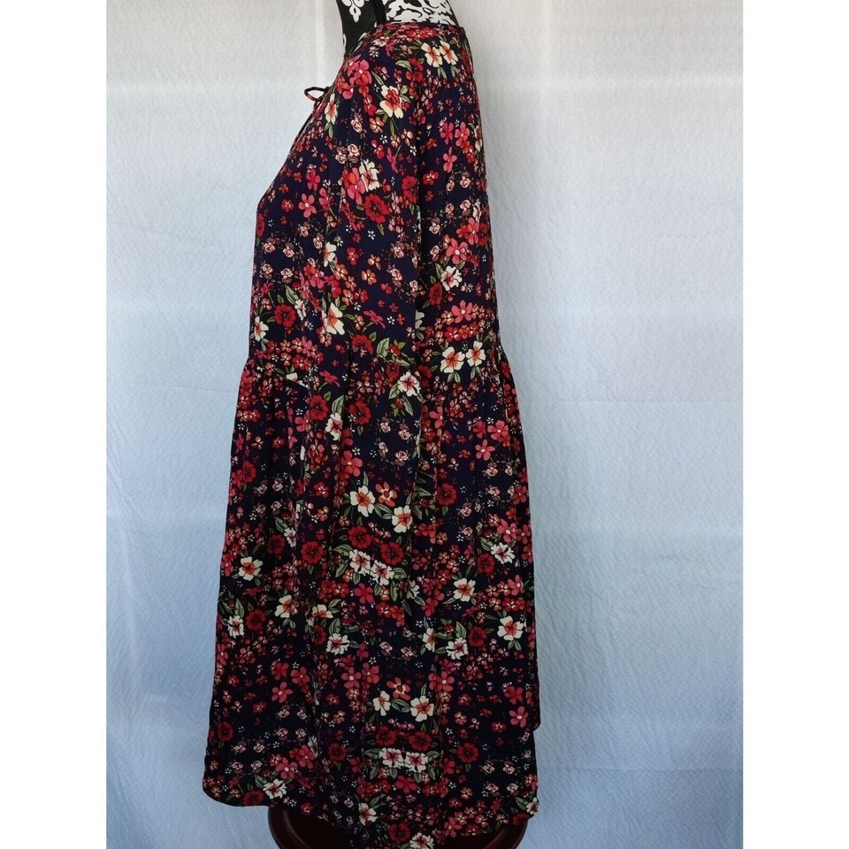 - Madison Leigh Women Blue Casual Shirred Waist Floral Tunic Dress Size 12