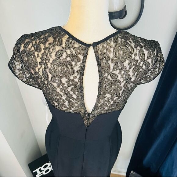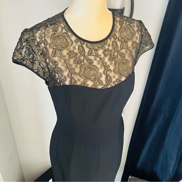 - Maggy London Black Stretch Crepe Gold Lace Illusion Dress, Black, Size 8, NWT
