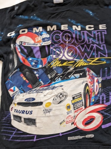 In vendita c'e una maglietta nera Mark Martin 6 Blast Off All Over Print del 1993 usata Nascar Track Gear L.