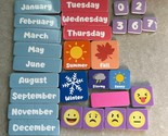Magnetic Daily / Monthly Calendar Miscellaneous Replacement Pieces. Good condition. See pictures for what is included. Can be used with the Melissa Doug calendars. This is not a complete set.