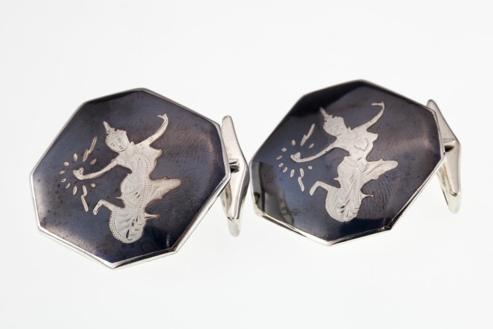 Magnifique Argent Sterling Niello Homme Octogonal Manchette Paire 18.7grams