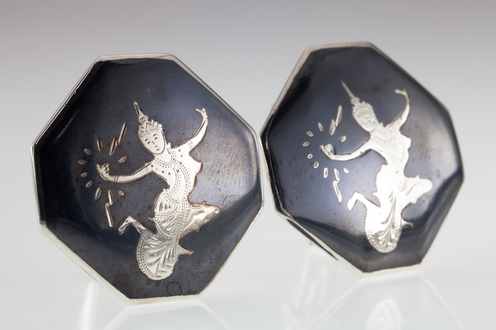 Magnifique paire de boutons de manchette en argent sterling niello 18,7 grammes