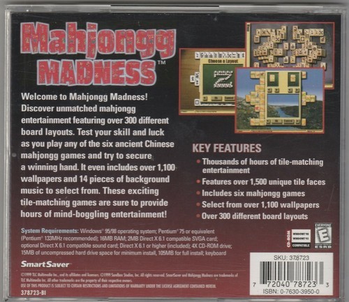 - Mahjongg Madness CD-Rom for Windows 95 & 98 by SmartSaver ~ 1999
