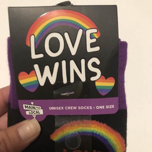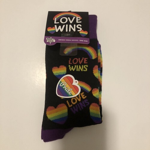 - Main And Local LOVE WINS Rainbows & Rainbow Hearts Pride UNISEX Socks NEW