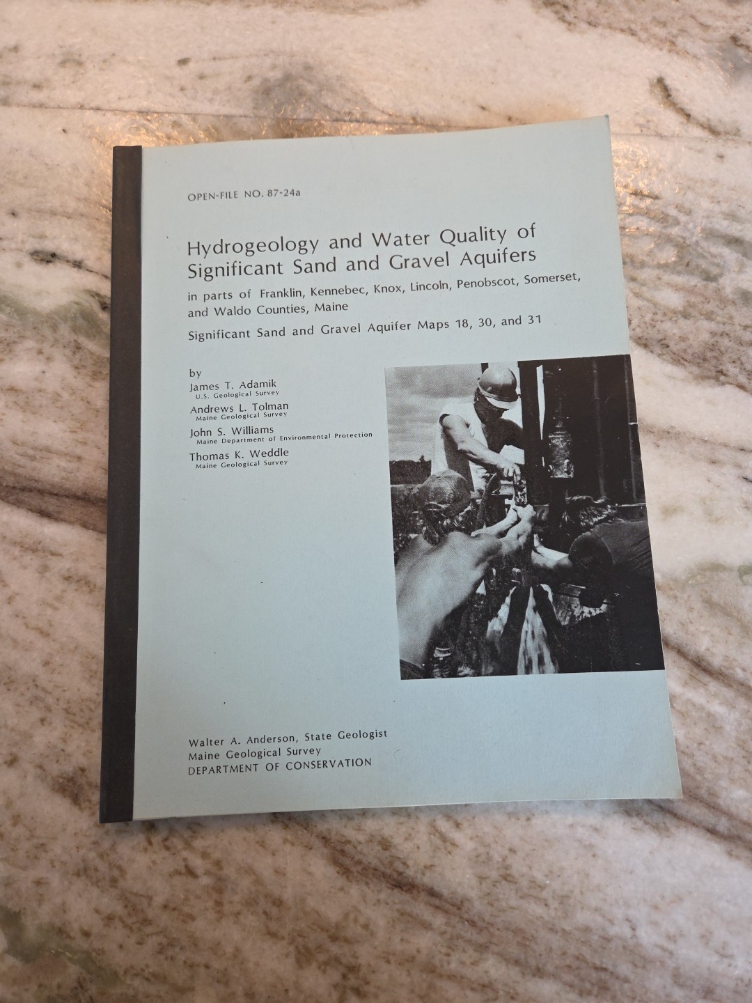Maine Hydrogeology and Water Quality of Aquifers Maine Geological Survey 1987. Shipped with USPS Media Mail.