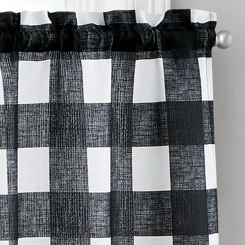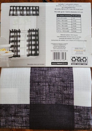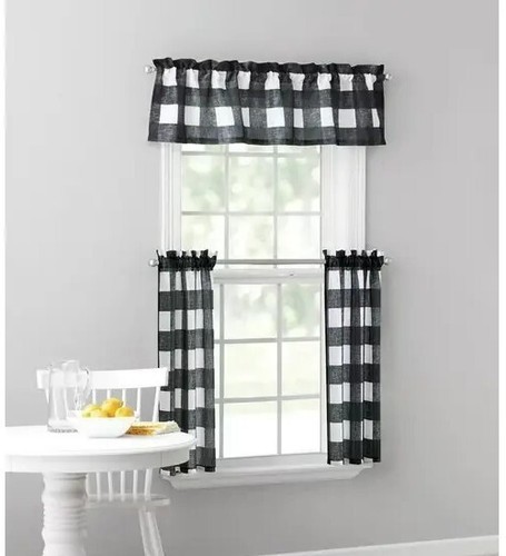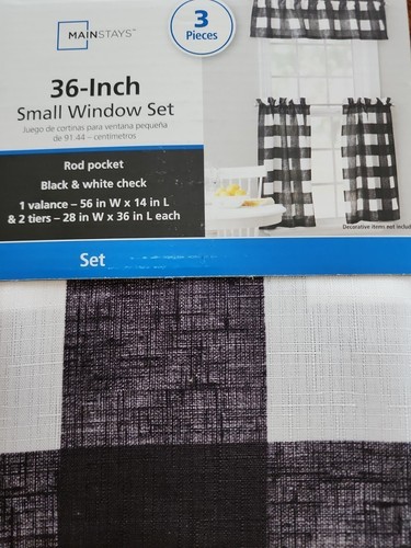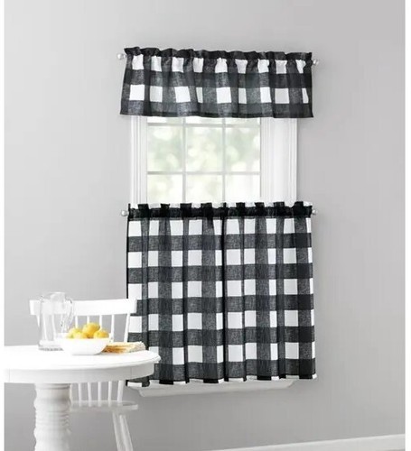- Mainstays 3-Piece Valance & 36" Tiers Curtain Set ~ Black & White Check Pattern