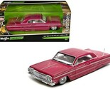1/26 scale diecast model Authentic representation of the 1964 Chevrolet Impala SS Lowrider Pink finish with graphic detailing White interior Part of Maisto Design's "Lowriders" series Ideal for display in a collection or on a desk