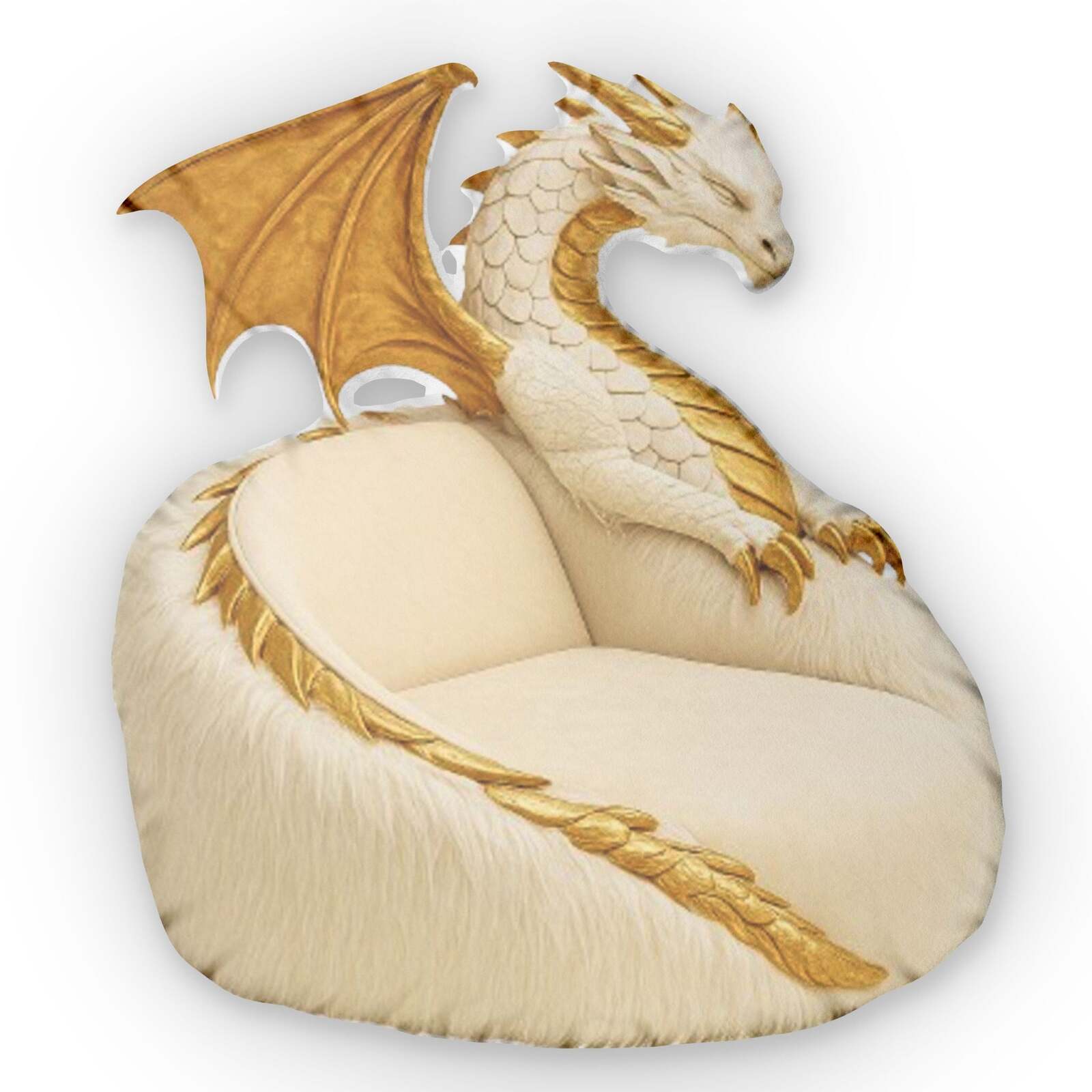 - Majestic Golden Faux White Dragon Lounger Chair – Shaped Pillow