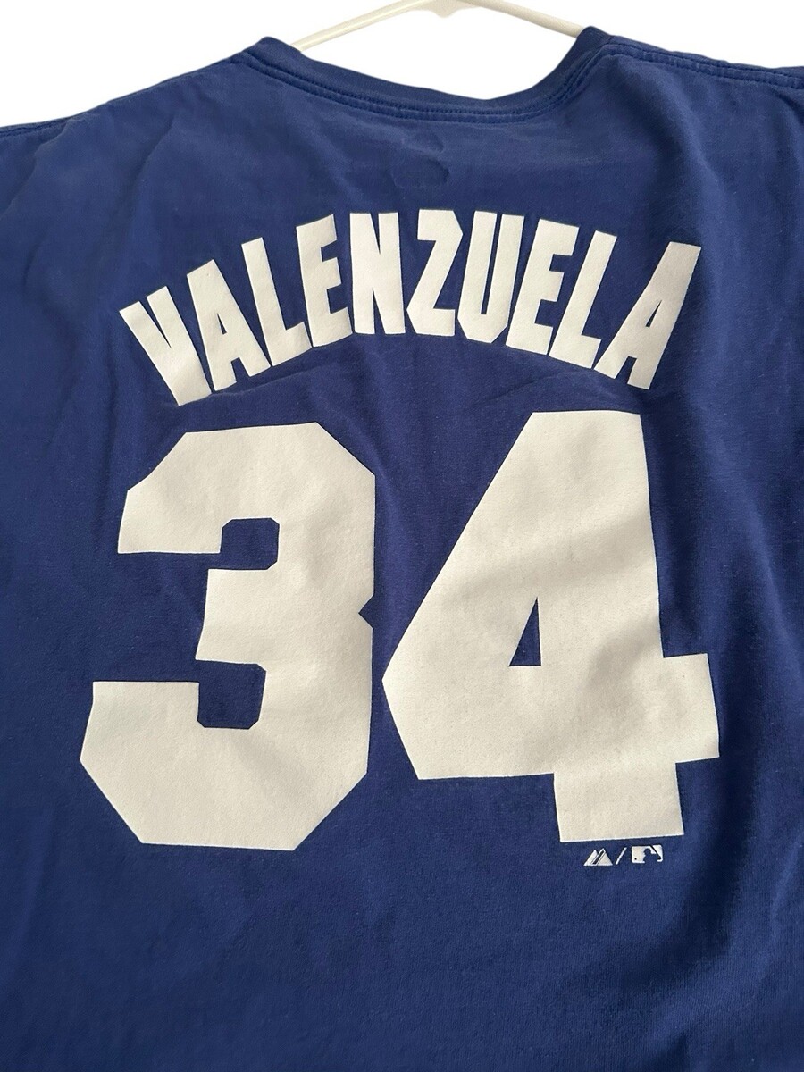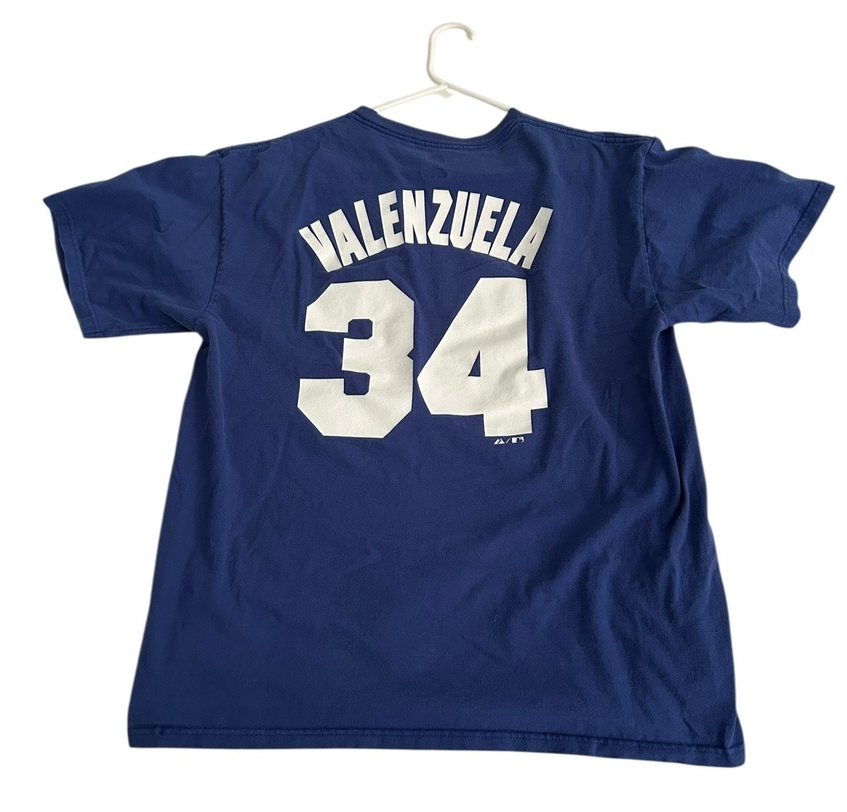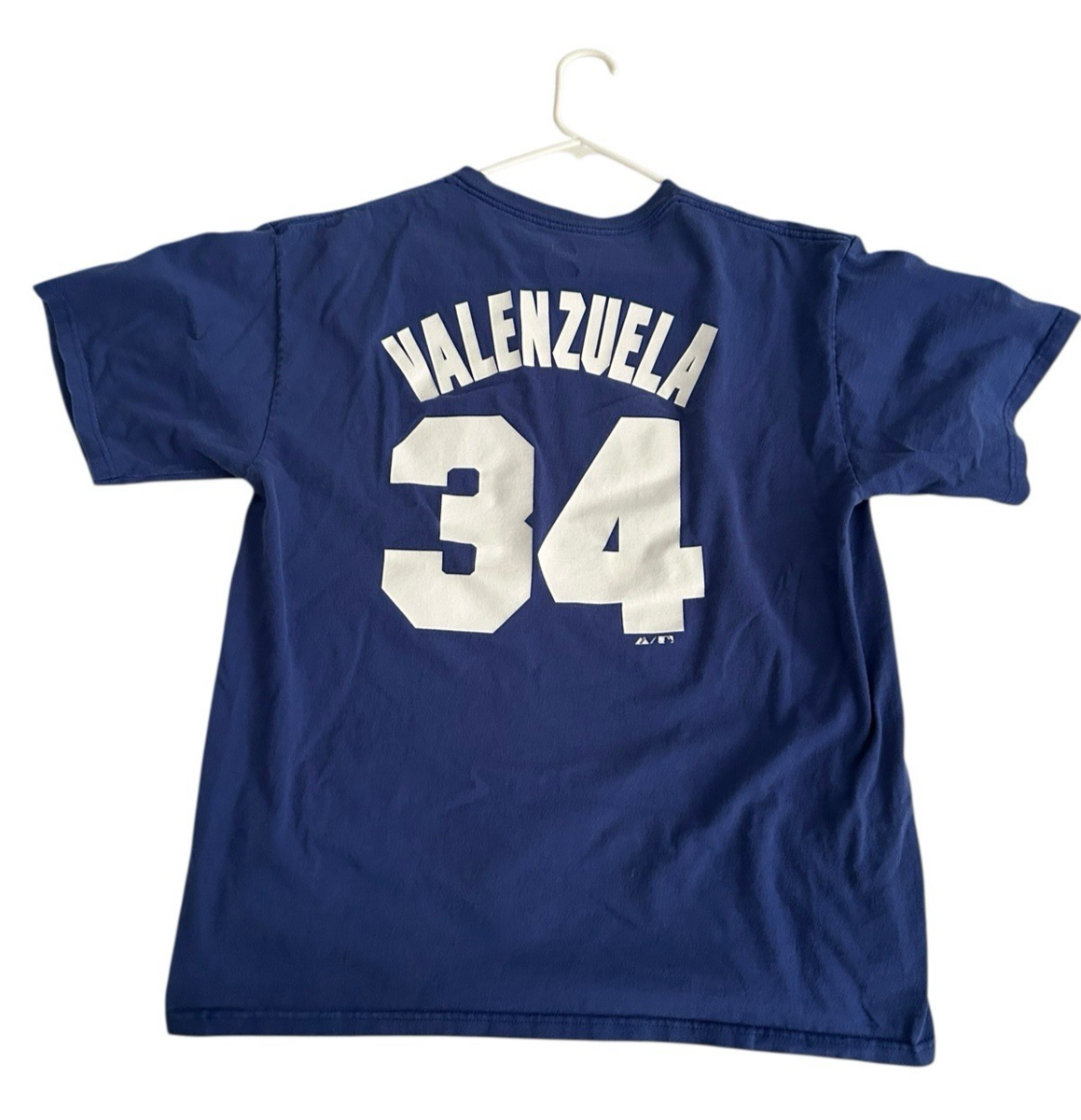 - Majestic Los Angeles LA Dodgers Mens Large Valenzuela Shirt Jersey Tee MLB Blue