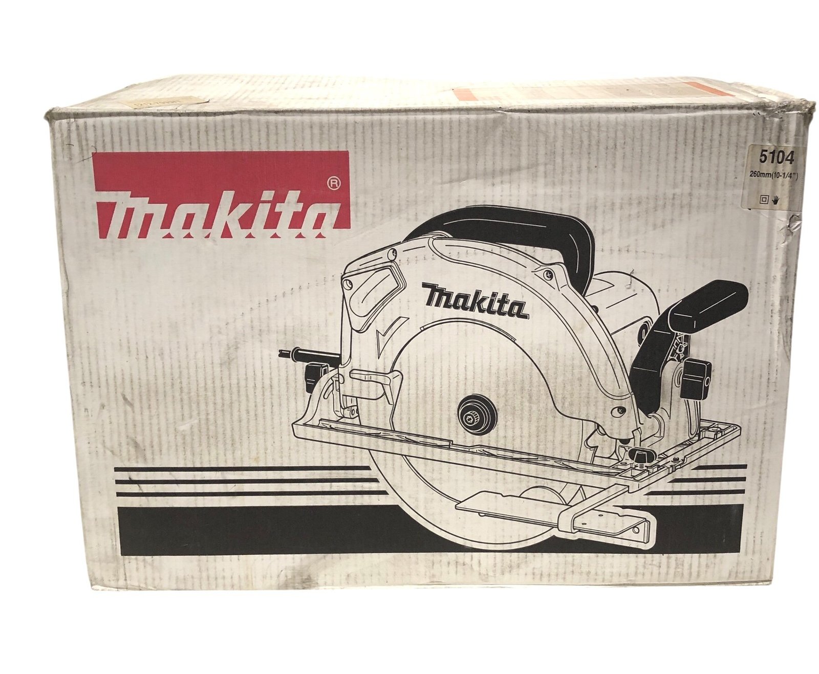 Category: Corded hand toolsType: Circular SawBrand: MakitaModel number: 5104Size: 10.25" / 14AColor: BluePower source: ElectricModel name: circular Saw With Electric BrakeVoltage: 115Condition:New (Open Box)Notes:Box opened to verify contents.