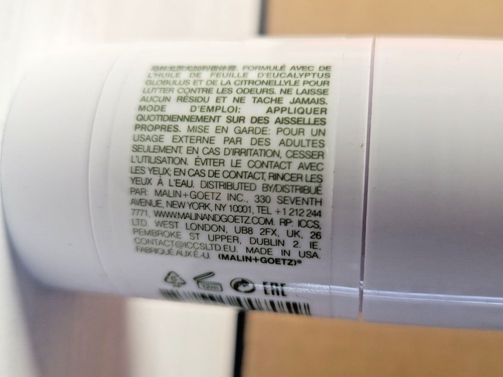 - Malin + Goetz Eucalyptus Deodorant 1.0 Oz 28 g, Clean Aluminum-Free, NO BOX