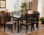 Maliyah Sand Fabric Upholstered Dark Brown 7-Piece Dining Set