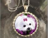 - Maltese puppy lying in purple flowers silver necklace beautiful gift