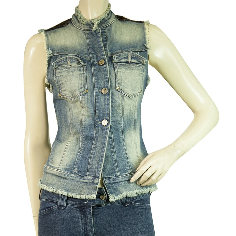 - Manila Grace Blue Denim Jeans Sequined shoulders Vest Jacket Gillet sz 40