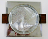 The Manning-Bowman 1930s Chrome Glass Wood Handled Serving Platter is an antique piece from the Art Deco era. Made in the United States, this vintage serving tray features a square shape with three compartments and a silver color. The unique combination of wood handles, glass dish inserts, and chrome accents make it a stylish and functional addition to any kitchen or dining room. Its compact dimensions of 11 3/8 inches in length and 9 1/2 inches in width make it ideal for serving small dishes or desserts during special occasions or collectible displays. Found in Grandmother's china cabinet where it laid undisturbed for 40 years. Perfect condition, as new.